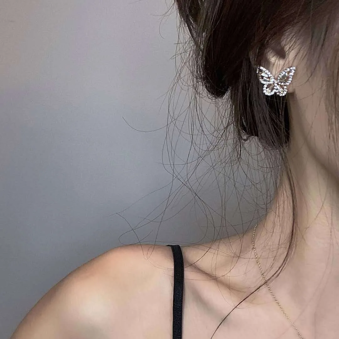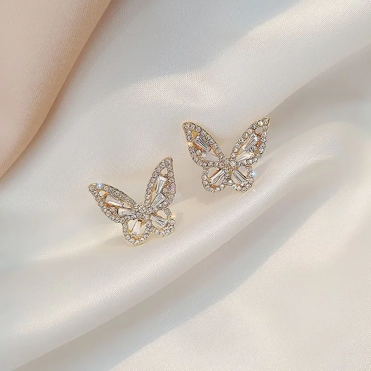 Корейские новые модные серьги-бабочки для женщин 2021 в стиле Панк Стразы милые серьги-гвоздики с цирконом для девушек ювелирные изделия Kpop