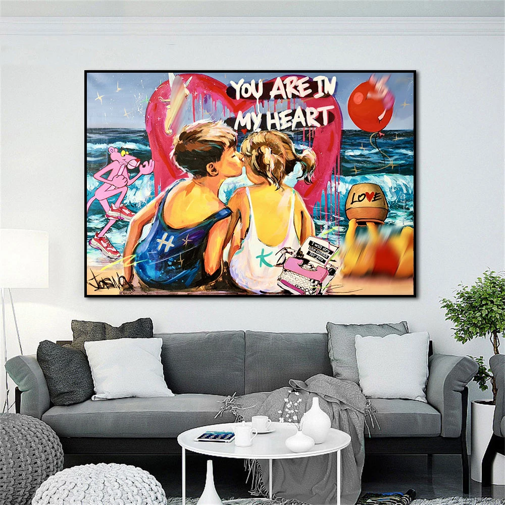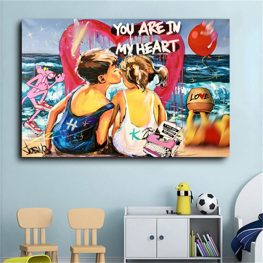 Мультяшный Портрет поп-арт холст картина You Are In My Heart плакат печать на холсте современное настенное Искусство гостиная украшение для дома