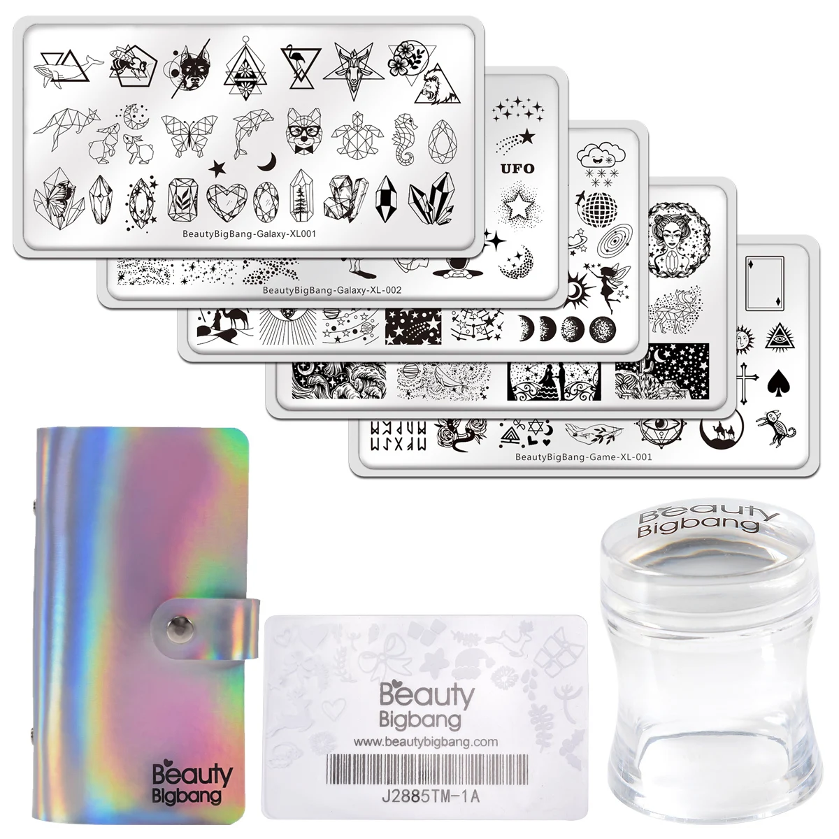 Набор для дизайна ногтей Beautybigbang, 8 шт., пластины для стемпинга в стиле галактики из нержавеющей стали с изображением звезд, с сумкой для хранения, Наборы инструментов для стемпинга ногтей
