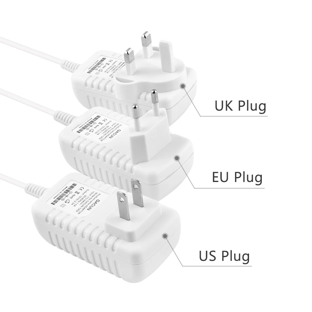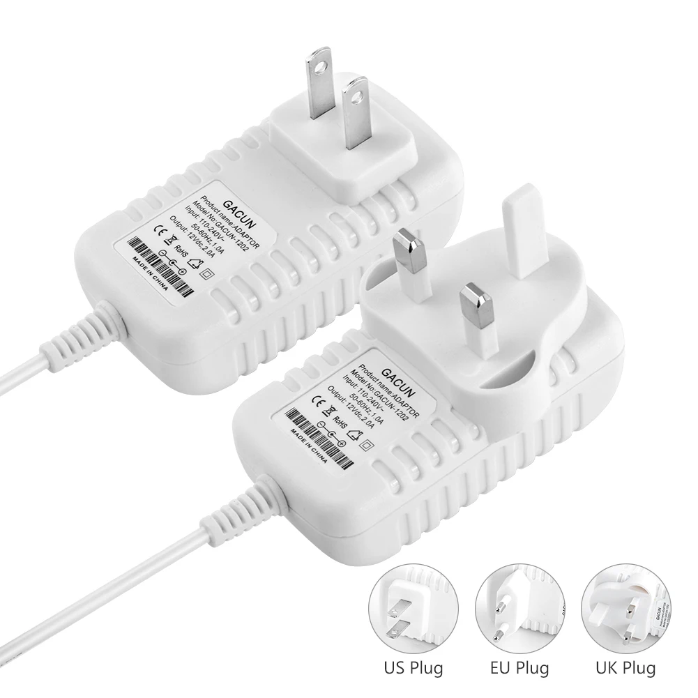 Адаптер питания, белый, переменный ток 110-240 В в постоянный ток 5,5x2,1 мм 12 В 2 А, разъем для США, ЕС, Великобритании, для светодиодной ленты 5050 3528, камеры видеонаблюдения, YCDC