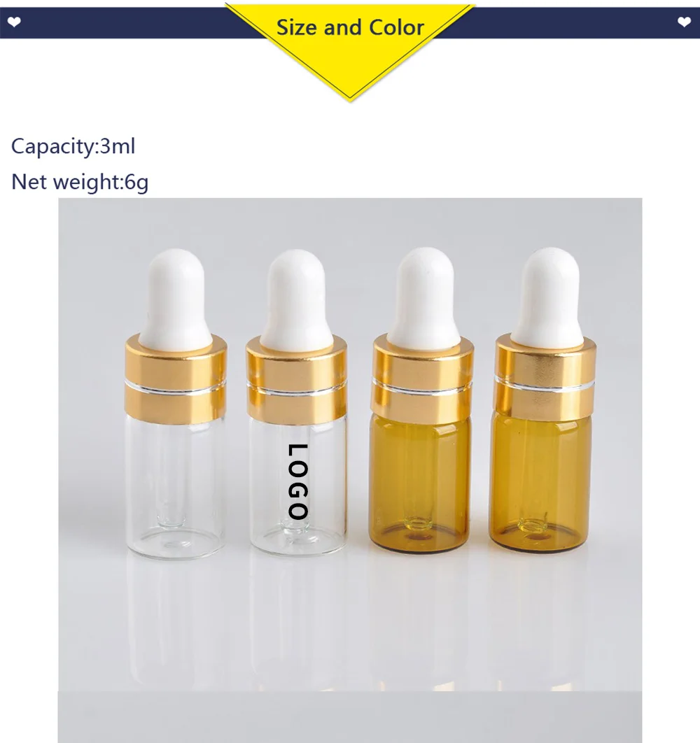 Бесплатный индивидуальный 100 шт.лот 3 мл мини портативный стеклянный многоразовый флакон для духов Пустой косметический контейнер с резиной