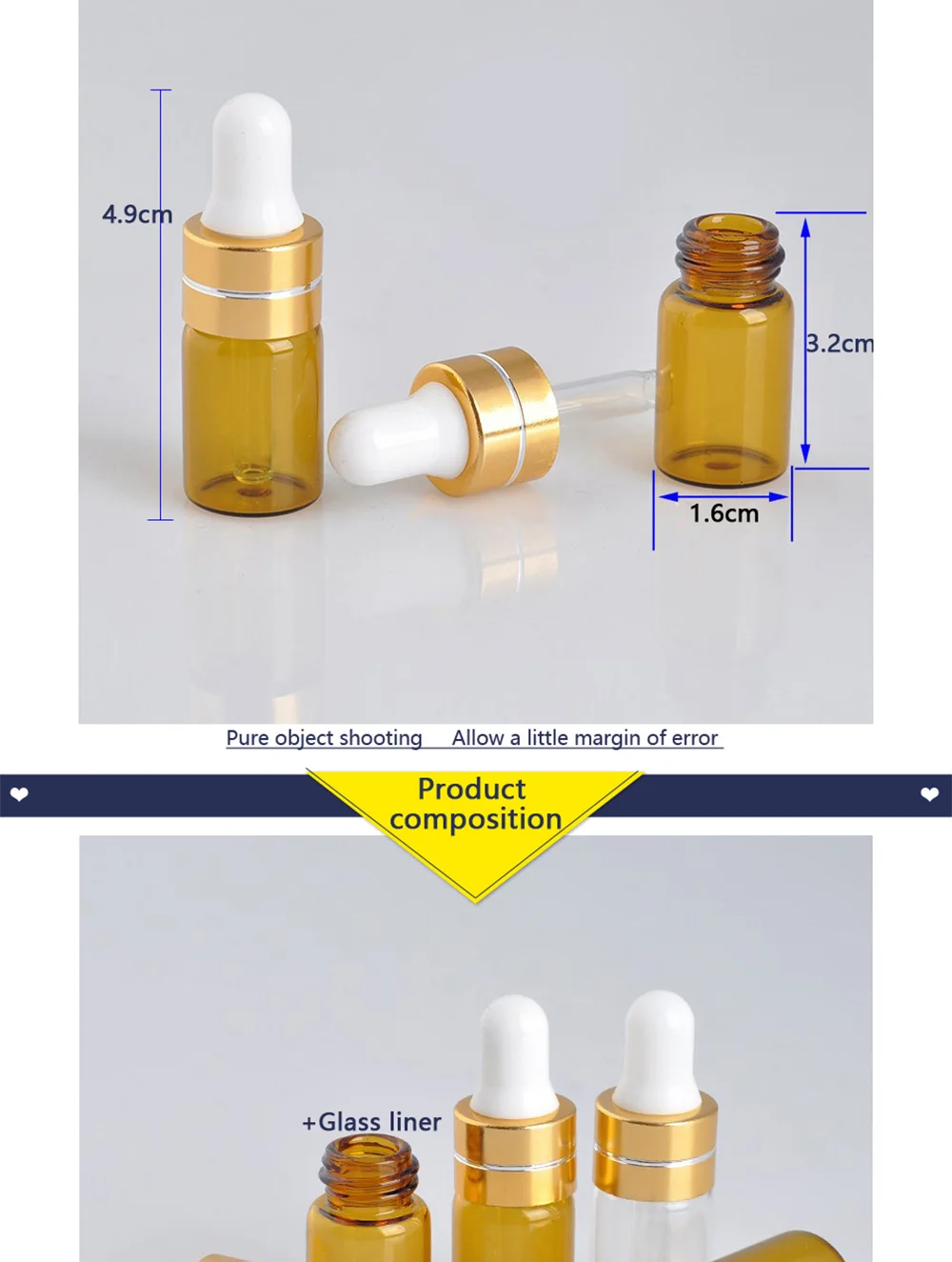 Пустая бутылка для макияжа с пипеткой, 3 мл, янтарный контейнер для...