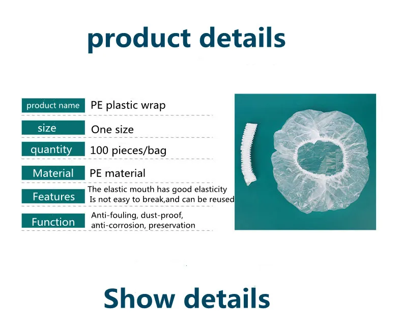 100 шт. одноразовые пищевые крышки, пластиковая упаковка, эластичны...