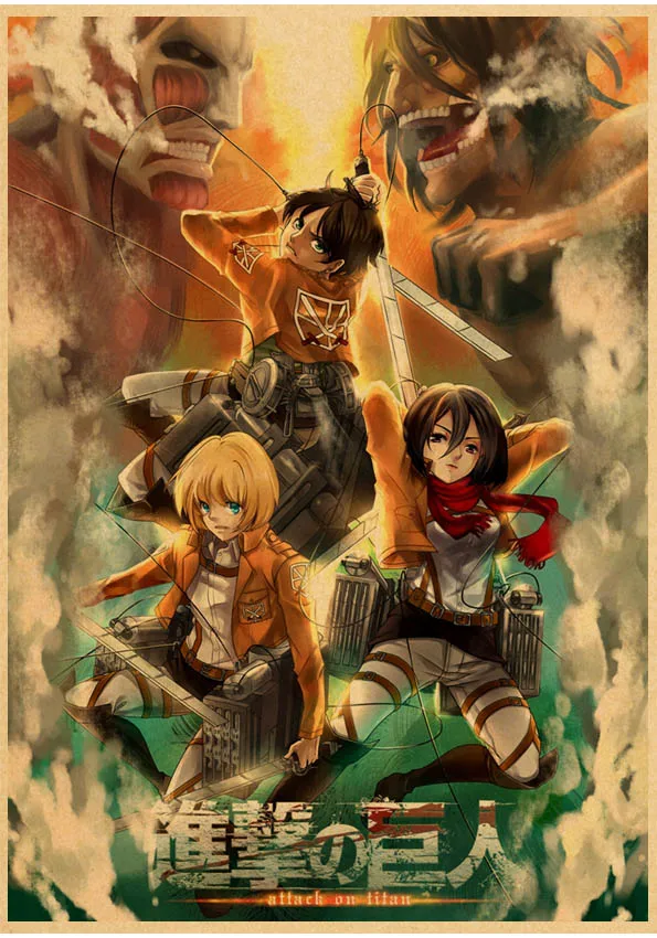 Японское аниме атака на постер Титан Kawaii мультфильм декор настенные наклейки крафт-бумага Художественная печать Декор для дома комнаты живопись