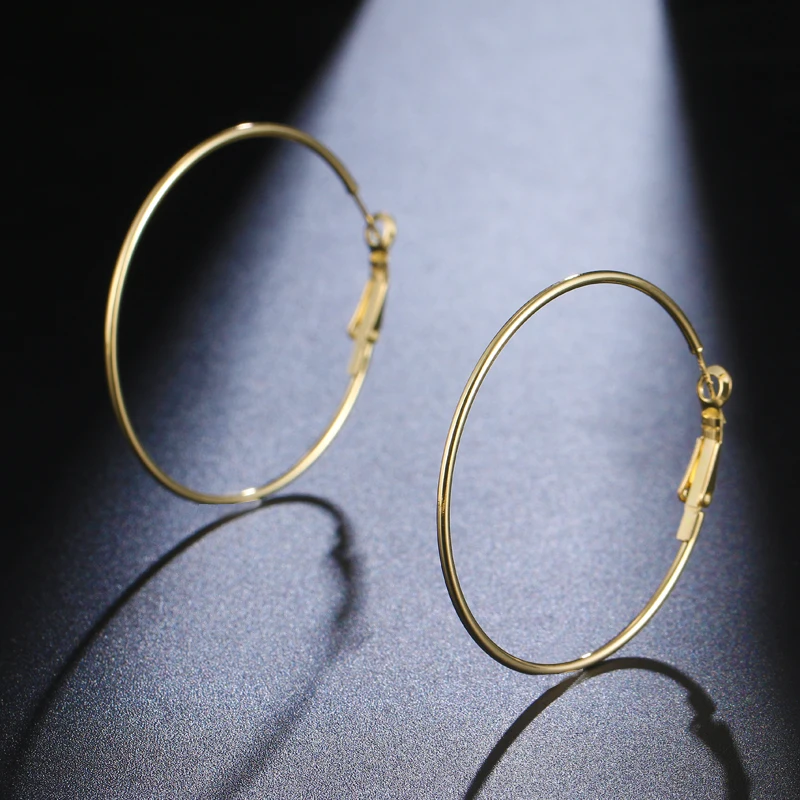 Серьги-кольца женские большие круглые золотистыесеребристые, классические элегантные великолепные украшения для девушек и женщин, простые ювелирные украшения