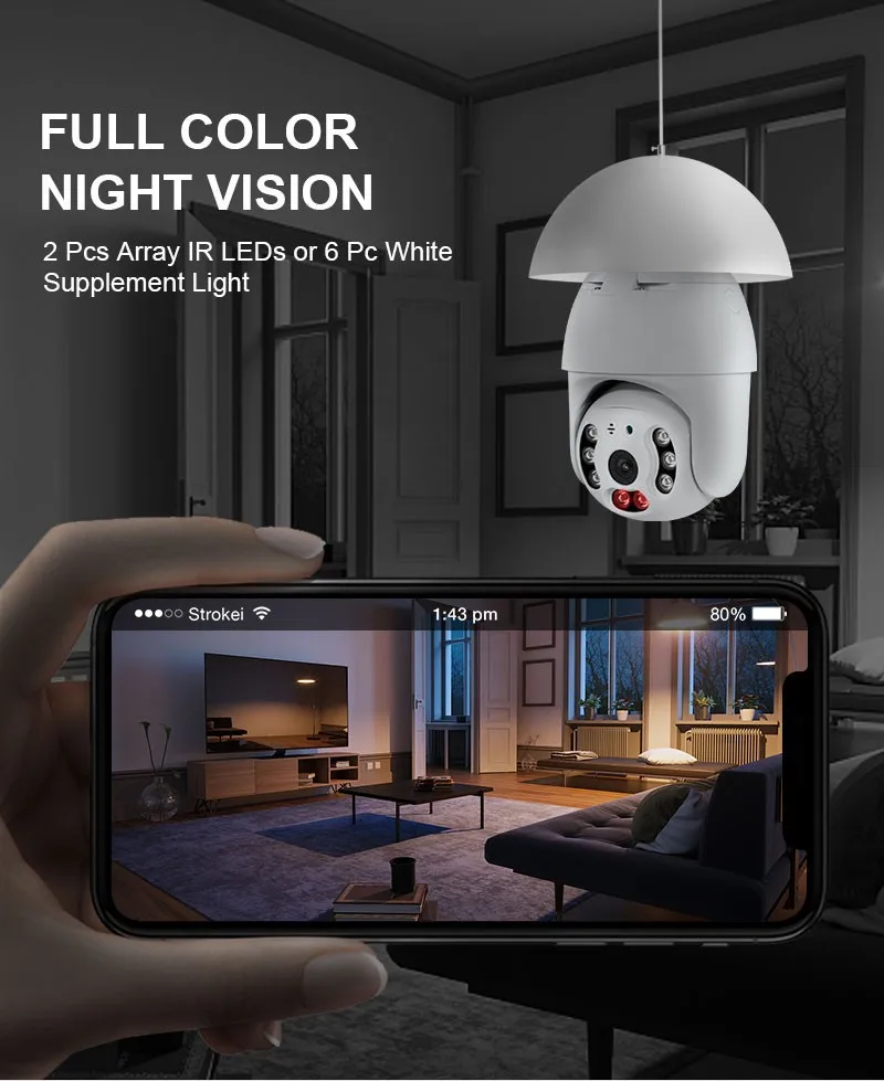 Беспроводная панорамная камера с функцией автослежения, поворотом н...