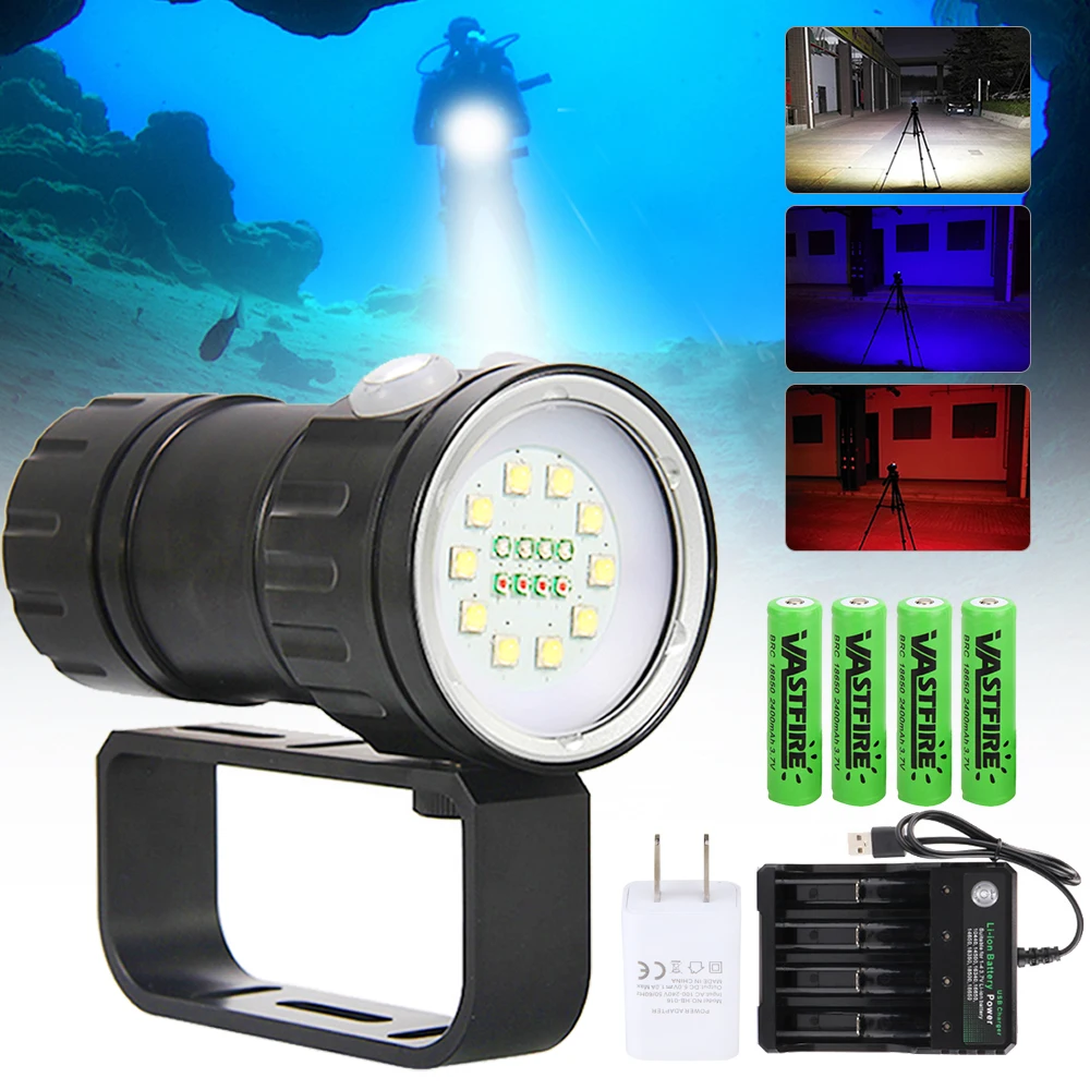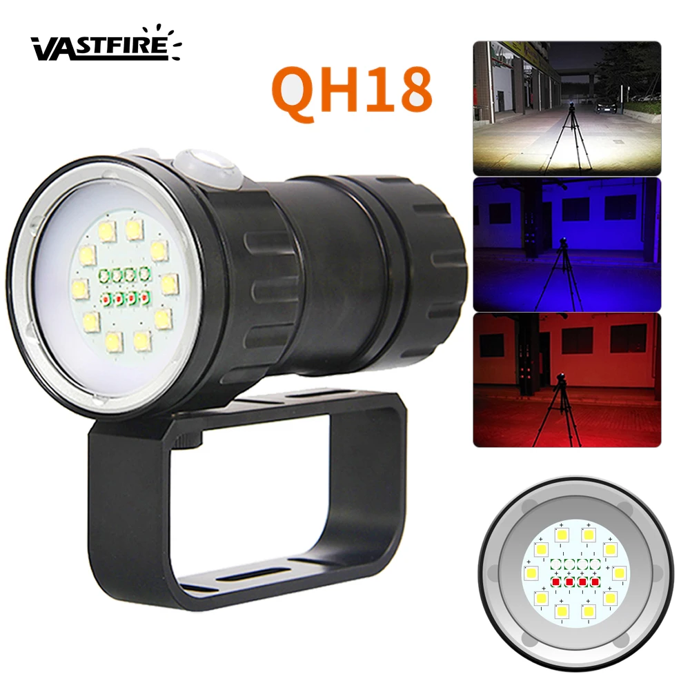 Фонарик для дайвинга, 120 Вт, 15 000 лм, 18 светодиодов, водонепроницаемый, IPX8, фотография камеры видео заполняющий светильник