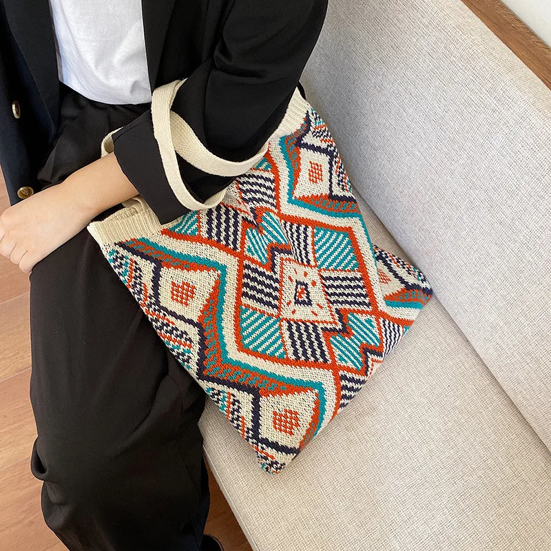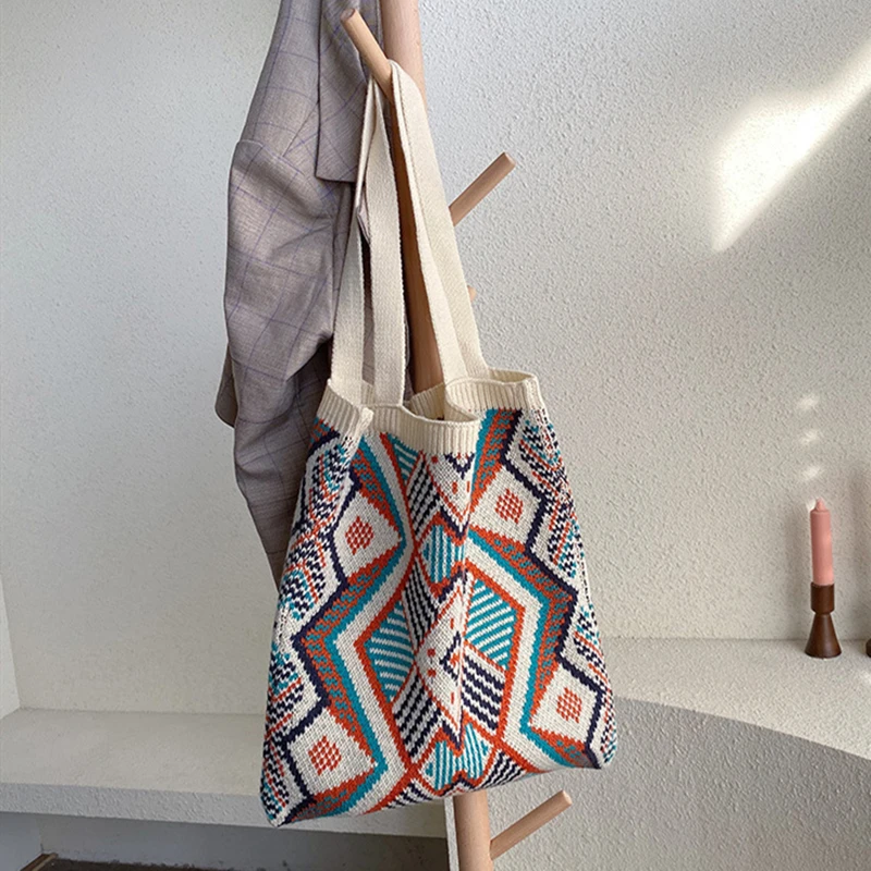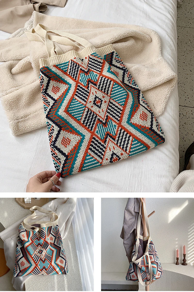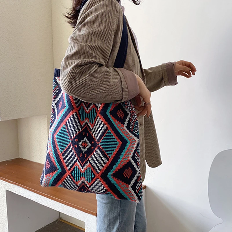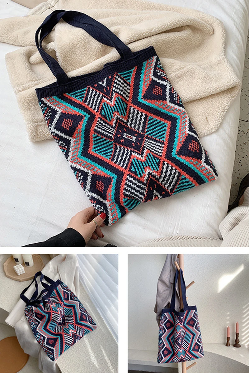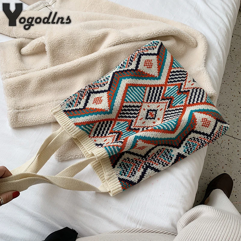 Шерстяные плюшевые тканые женские сумки на плечо, женские дизайнерские трикотажные сумки в этническом стиле, Летний Пляжный кошелек для покупок