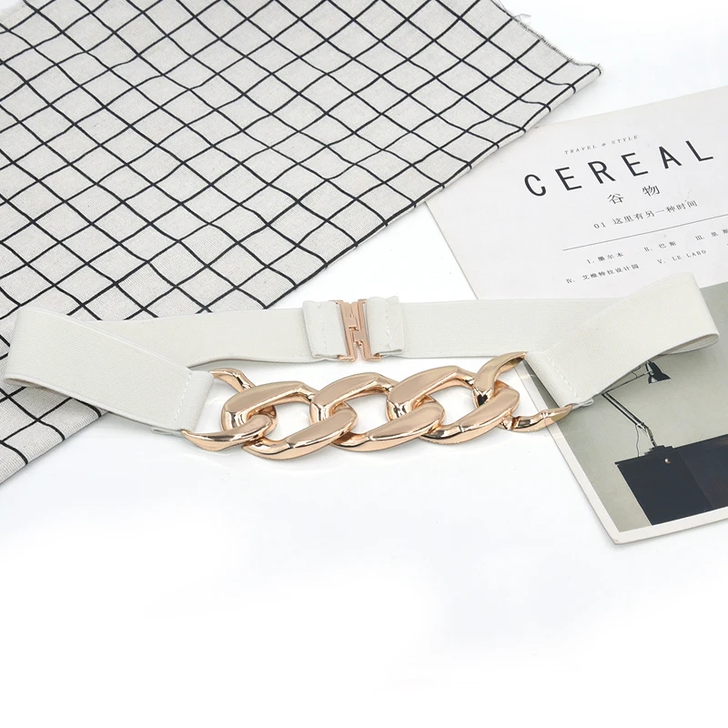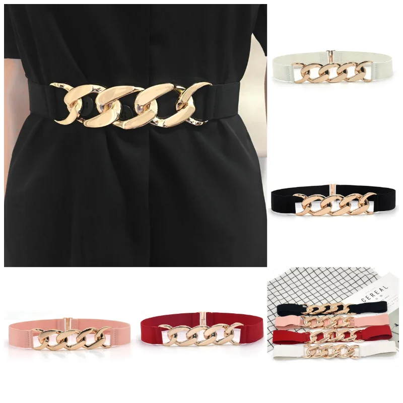 Пояс эластичный Женский, модный пояс с цепочкой из металла золотистого и серебристого цвета для платьев, пальто, костюмов, Универсальный декоративный пояс