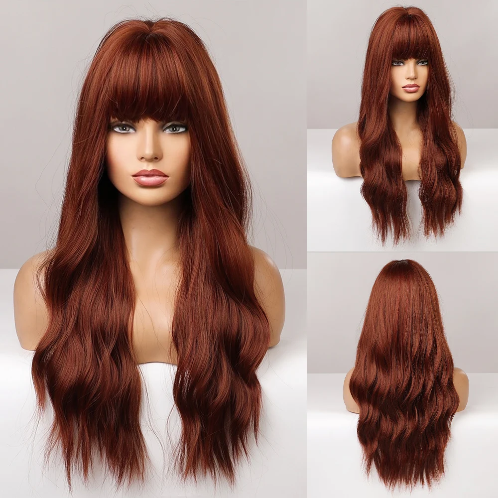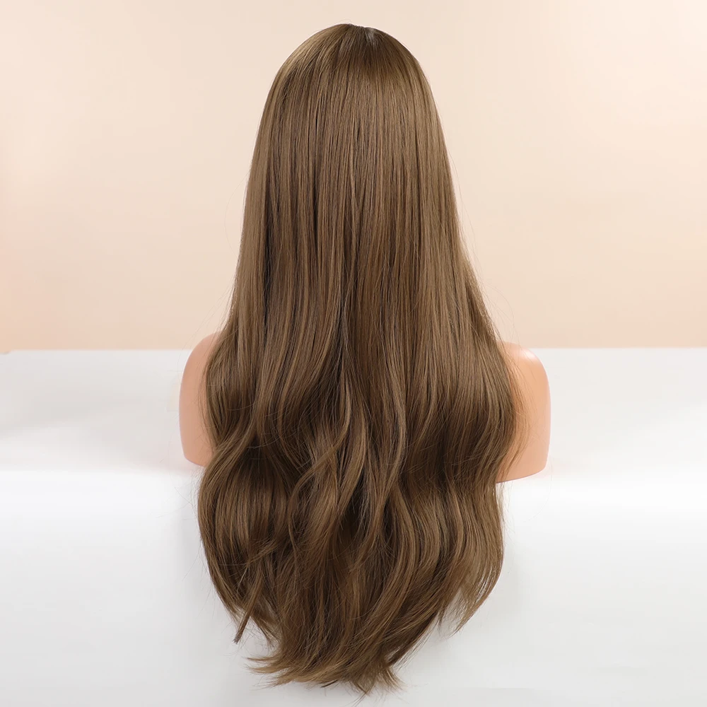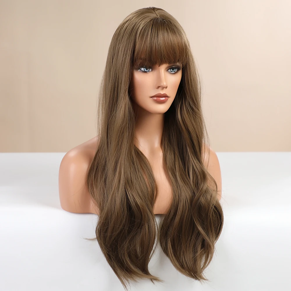 Длинные волнистые синтетические волосы блонд, единорог, парики темно-коричневого цвета для чернокожих и белых женщин, натуральные волосы с челкой, термостойкие волосы