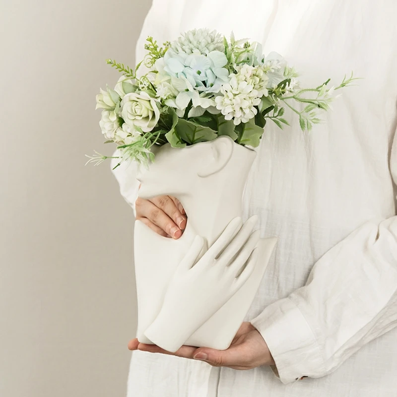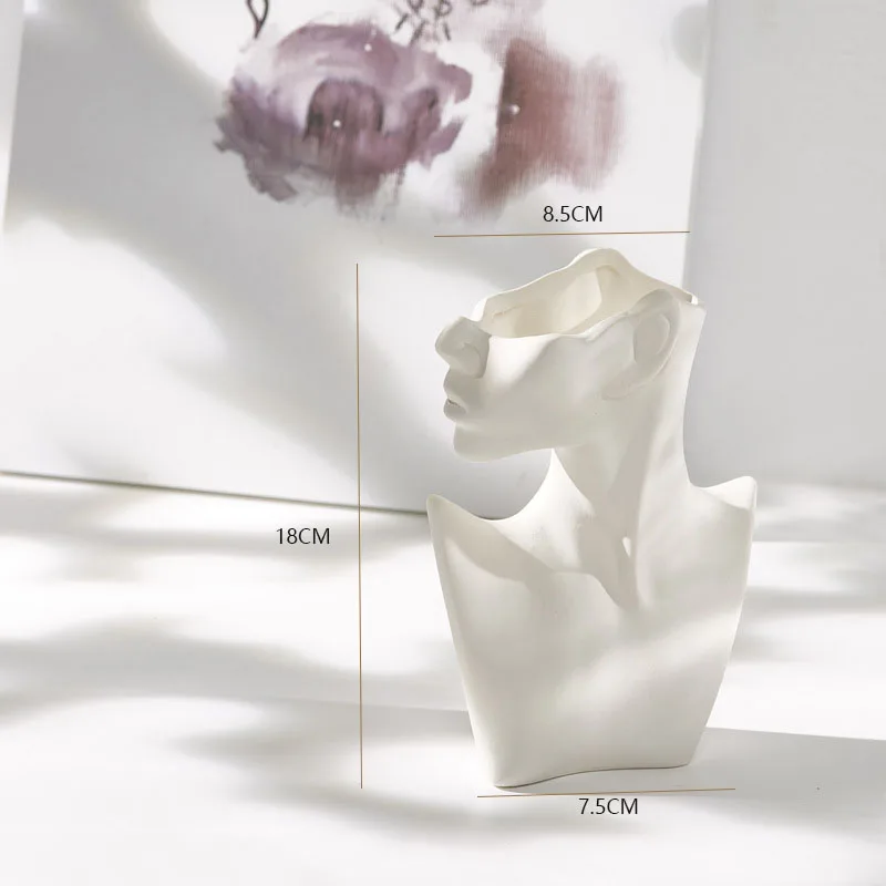 Керамическая ваза, абстрактное тело человека, половина лица, Цветоч...