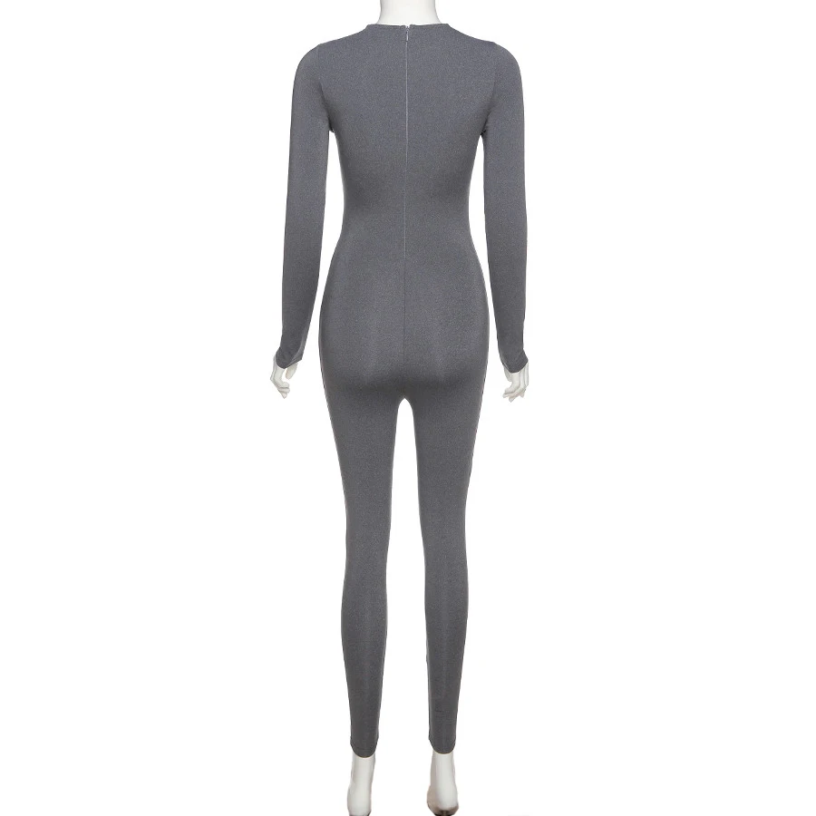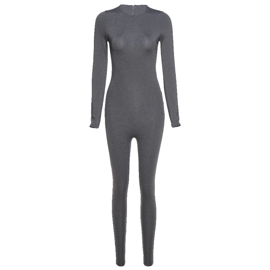 Женский комбинезон с длинным рукавом, однотонный черныйсерый облега...