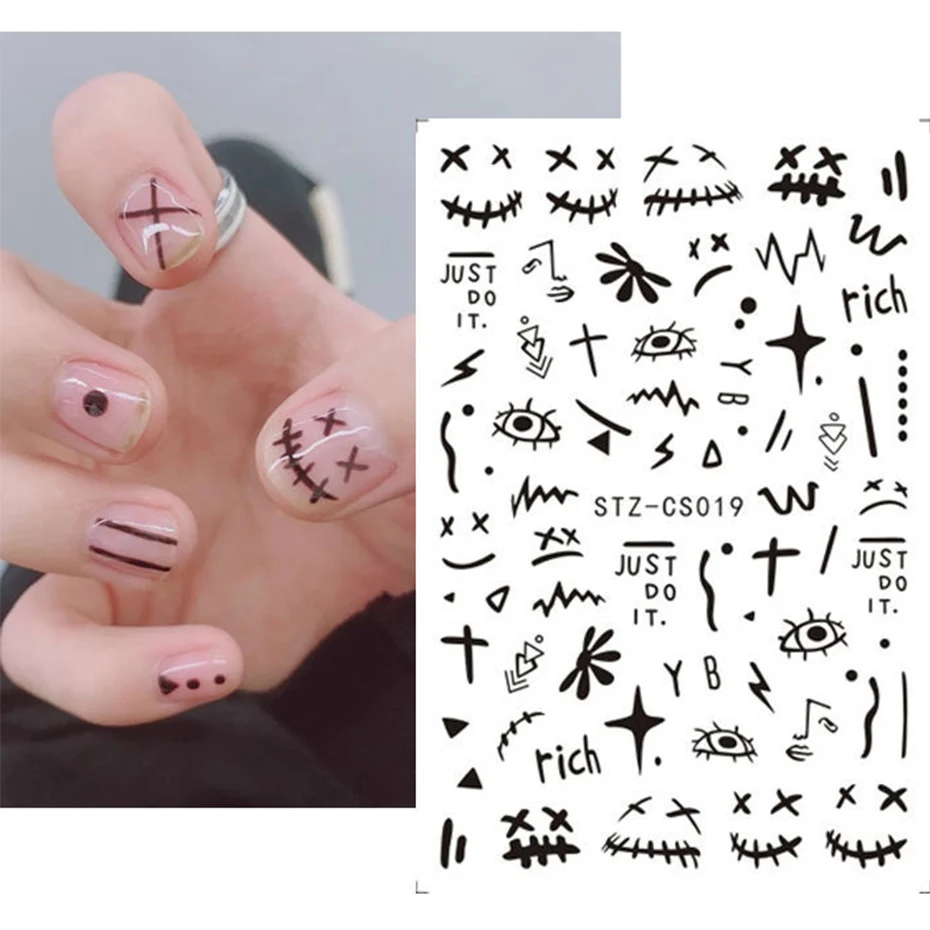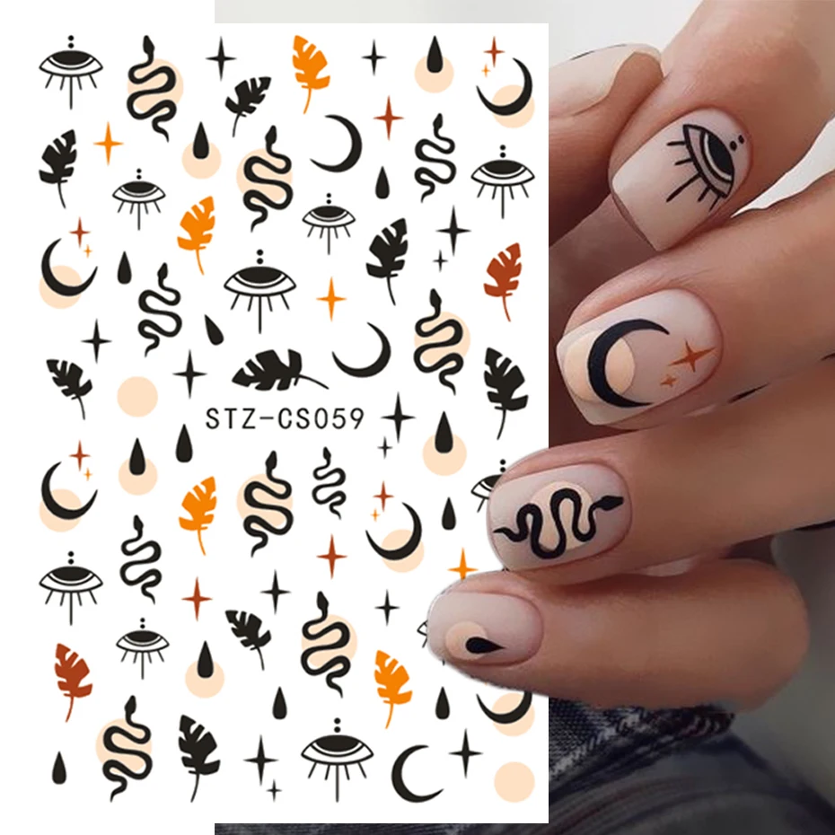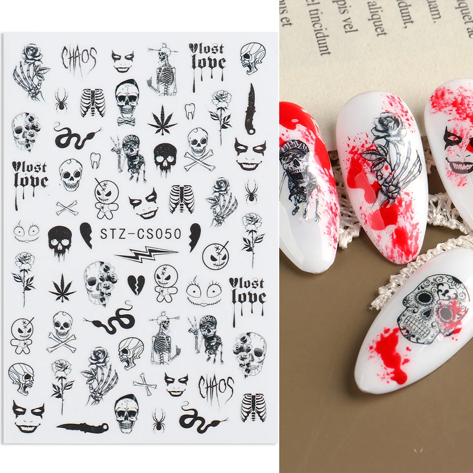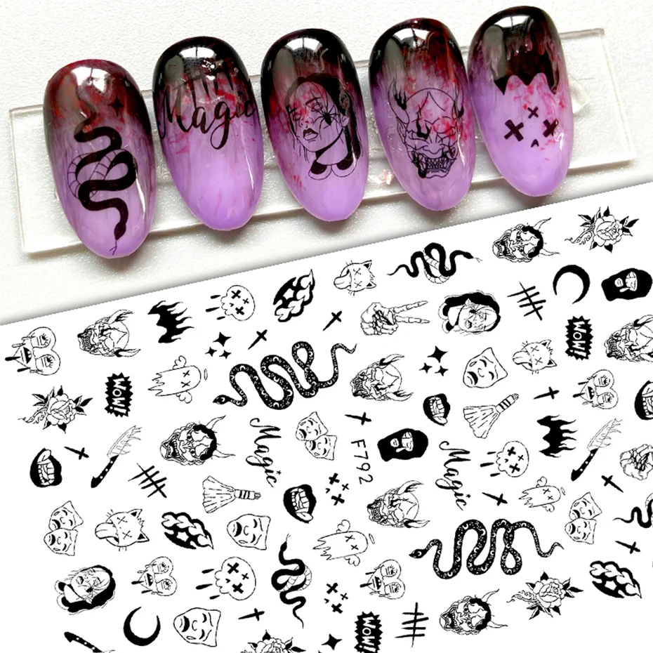 Наклейка для ногтей, черная змея, Череп, Хэллоуин, паук, глаза, клоун, покер, абстрактное лицо, слезы, декоративный дизайн, слайдер для ногтей, NLF793