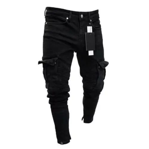 Джинсы мужские скинни, облегающие брюки-карандаш со множеством карм...