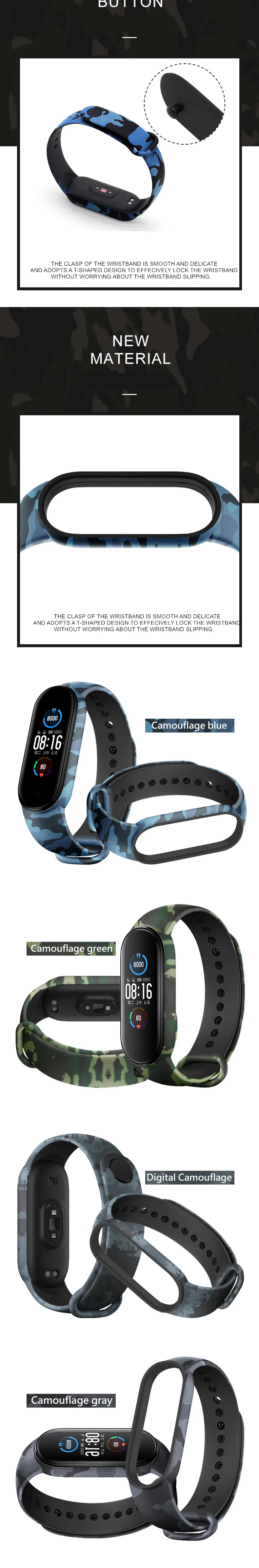 Ремешок силиконовый для Mi Band 5 6, оригинальный nfc браслет с камуфляжным узором для Xiaomi Mi Band 6 5 4 3