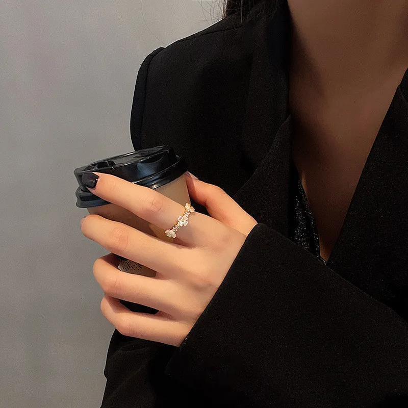 Открытые Кольца с маленьким цветком из циркония для женщин, нежные модные ювелирные изделия, кольца в Корейском стиле, оптовая продажа ювелирных изделий