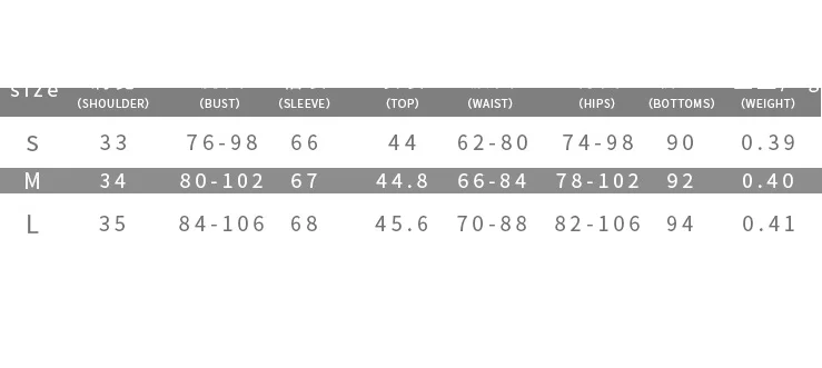 Таблица размеров