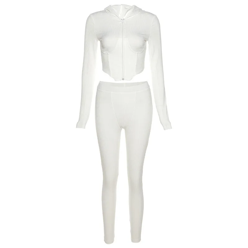 Повседневный Женский Байкерский комплект из двух предметов, куртка на молнии с капюшоном и длинные брюки, спортивный костюм, одежда для женщин, 2021