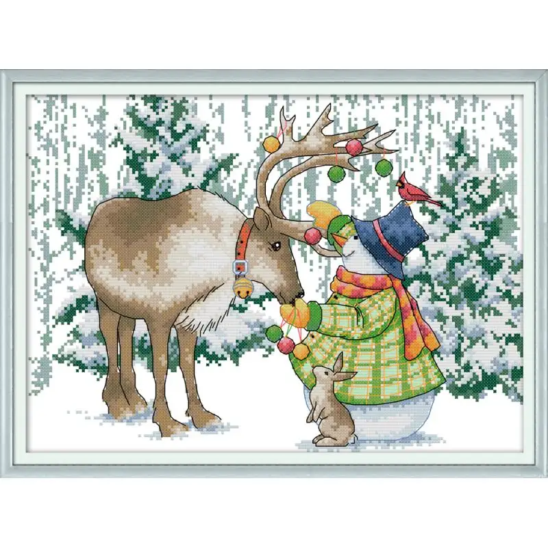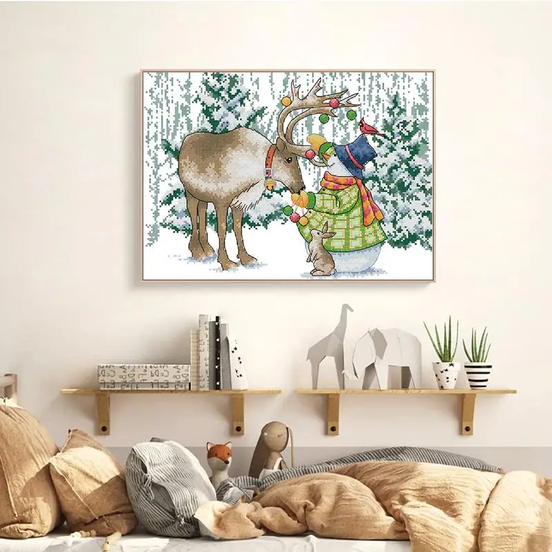 Набор для вышивания крестиком оленя и снеговика Joy Sunday, Набор для вышивания 11CT 14CT, набор для подсчета и штамповки холста, декор для комнаты