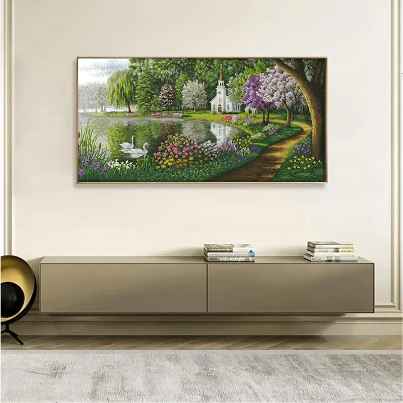 Красивый приозерный пейзаж Набор для вышивки крестиком Набор для вышивки 11CT 14CT Счетный и штампованный набор для рукоделия домашний декор
