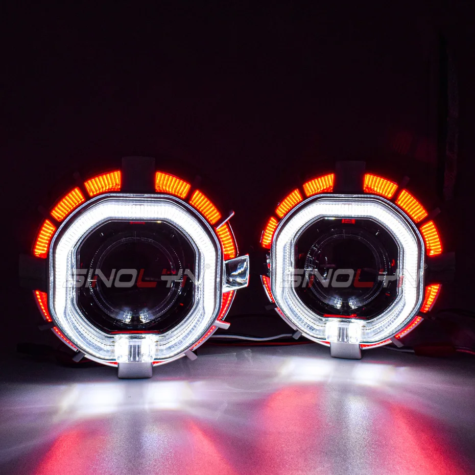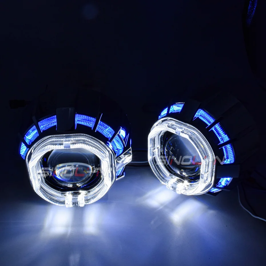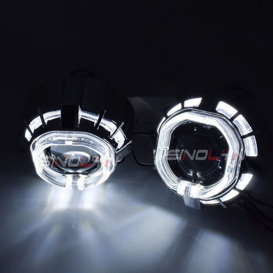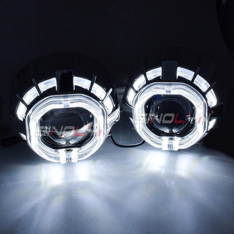Хорошие новости! Sinolyn повышает квадратный двойной светодиодный объектив для проектора ангельские глазки. Объектив для проектора Angel eyes растет в популярности с стильным видом. Квадратные глаза ангела более особенные, чем круглые. Этот объектив предназначен для Фар H4/H7 и поставляется с адаптерами для Фар H4 и H7.С помощью этих проекторов вы можете преобразовать галогенную фару в полноценную биксеноновую фару, без постороннего светильник! Этот комплект был собран для тех, кто хочет выбрать самые маленькие размеры и лучшую производительность. Проекторы Sinolyn H1 идеально подходят для Фар H4 И H7, сверление или распиловка обычно не требуются. Установка Plug & play с включенными переходными кольцами H4/H7.