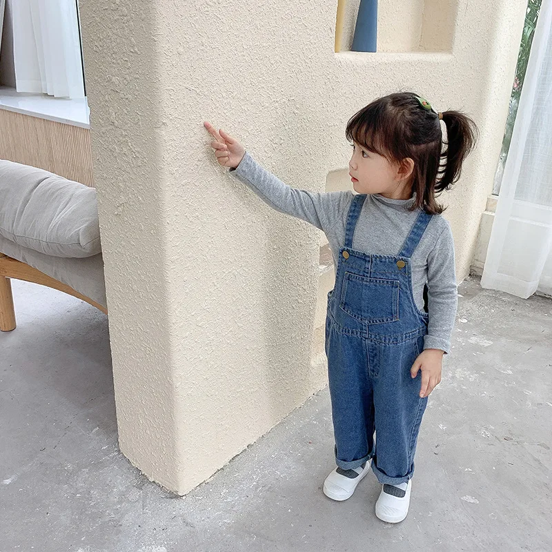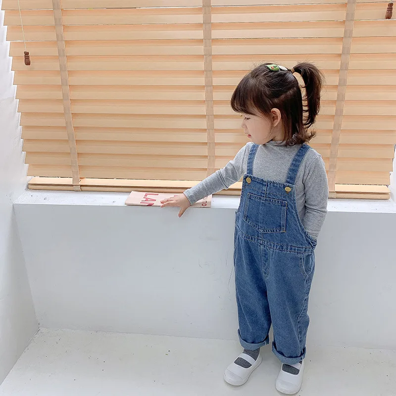 Новинка 2021, джинсовые комбинезоны для маленьких девочек, детские брюки для мальчиков, джинсовые Свободные Комбинезоны на лямках, модные женские брюки для малышей
