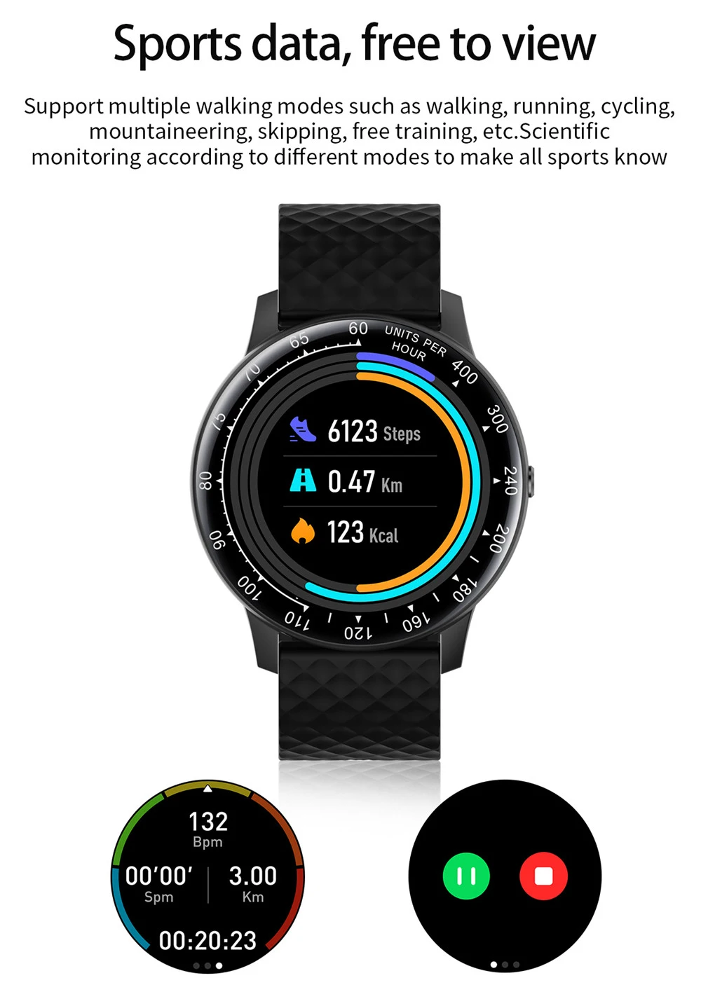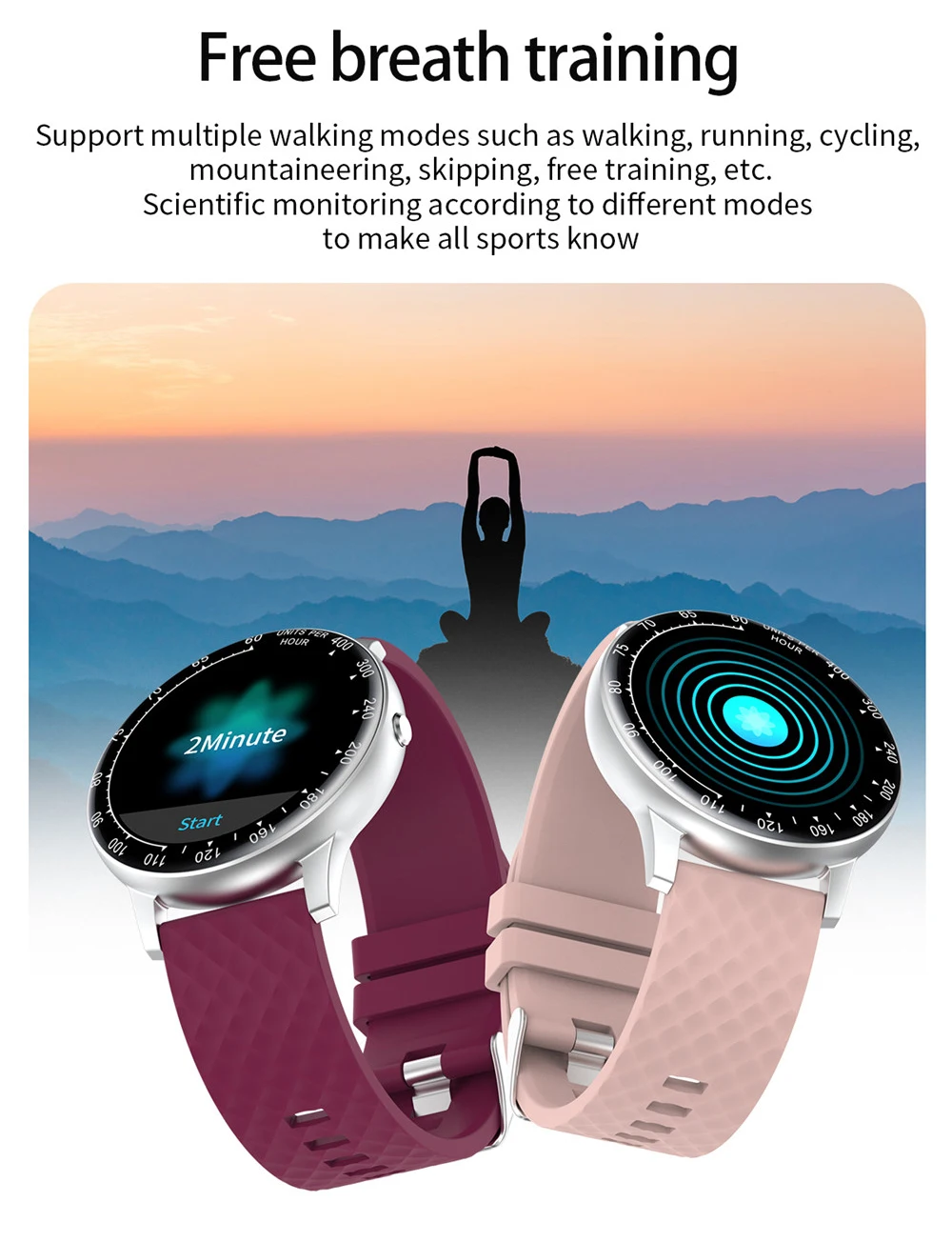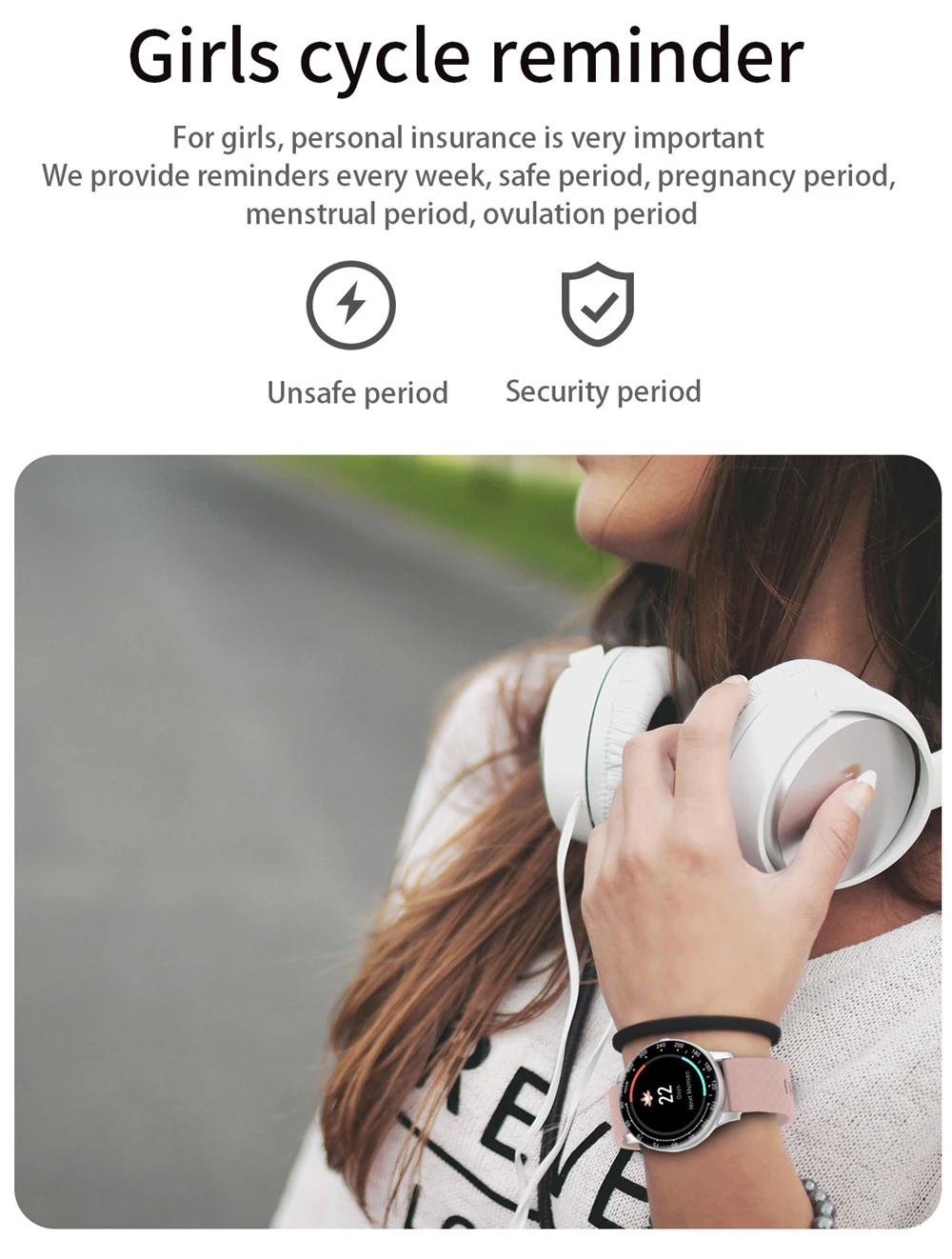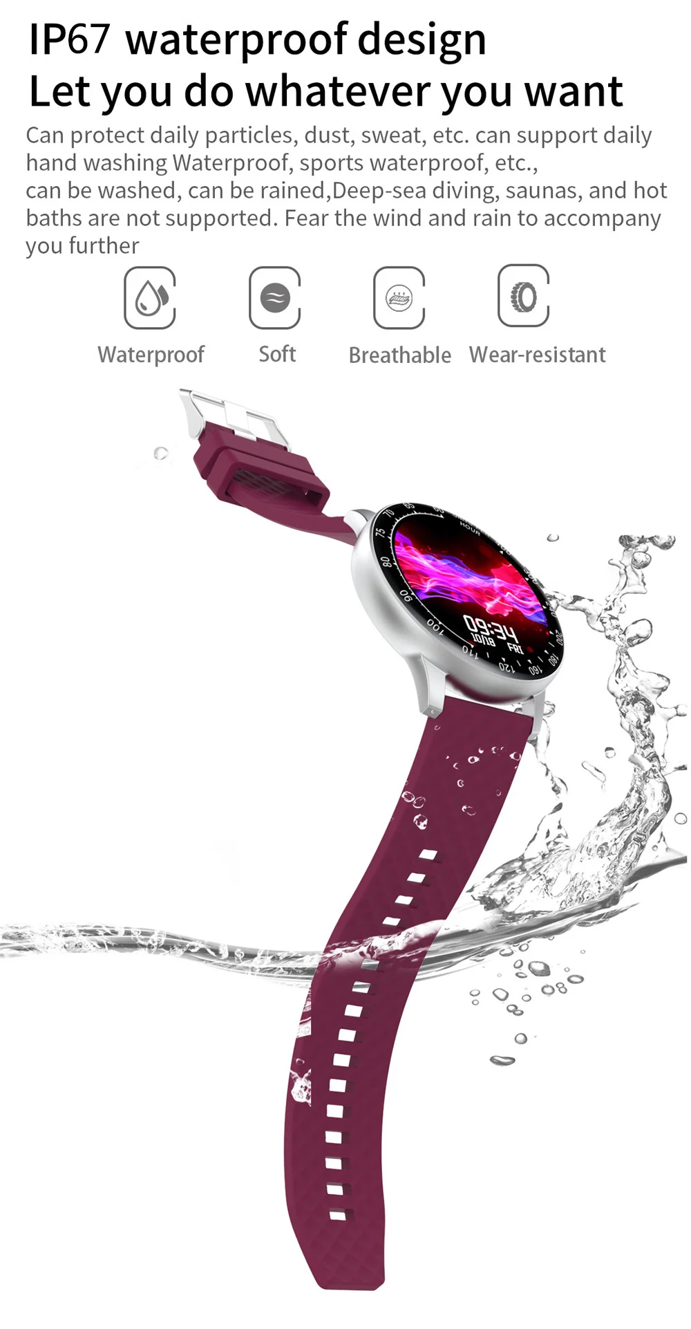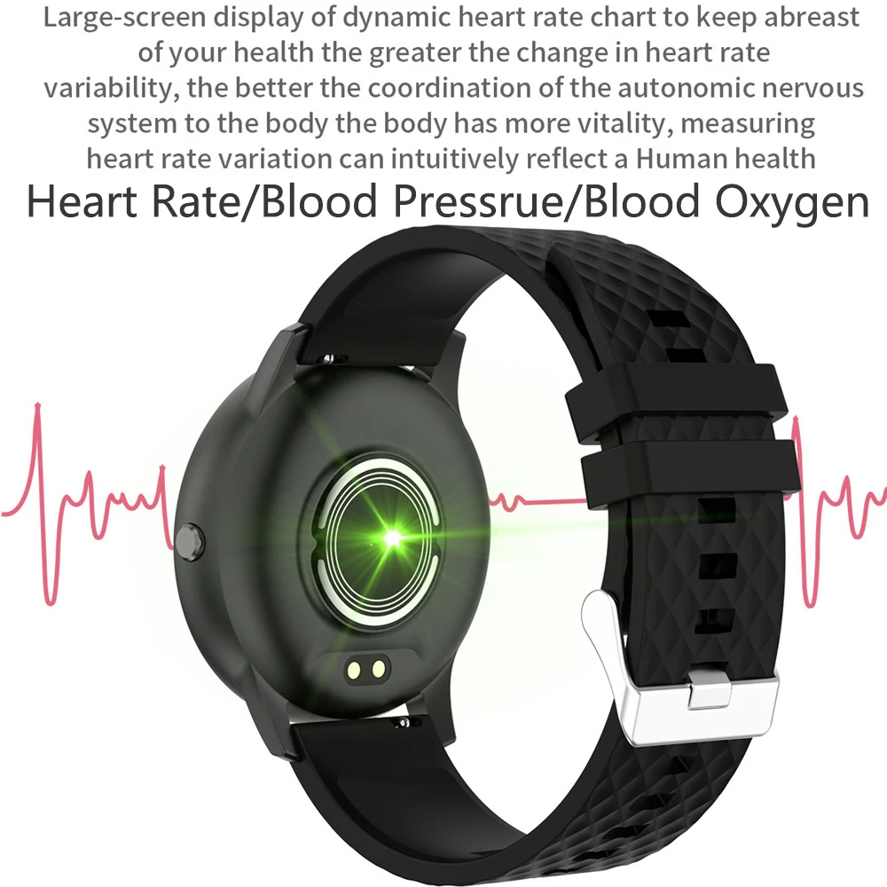 1,28 дюймовый полноразмерный круглый экран может настроить 5 обоев напоминание о менструальном цикле Водонепроницаемость: IP68 монитор сердечного ритма Монитор артериального давления Монитор кислорода в крови монитор сна мульти-спортивные режимы шагомер вызов или сообщение напоминание о вызове ID Дисплей информация Push напоминание (SMS/QQ/WeChat/Skype/Facebook/Twitter/линия/WhatsApp) погода кнопочный музыкальный контроль автоматический светильник-вверх Тип оповещения: Вибрационный секундомер Другие функции: Будильник, напоминание о сидячем положении, дистанционное управление камерой, приложение против потери Название: AdorHealth