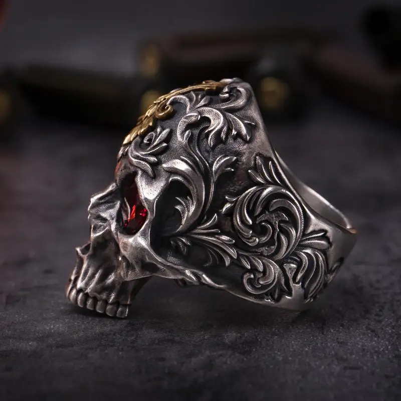 Мужское кольцо в стиле хип-хоп, красное циркониевое кольцо с черепом, рок вечерние Тия, локомотив, ювелирные изделия