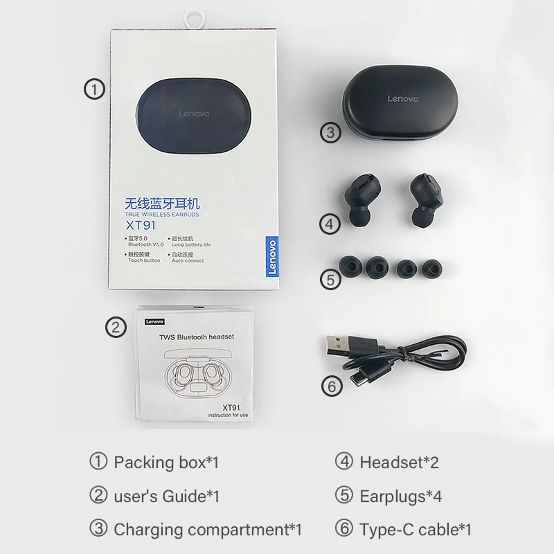 Оригинальные bluetooth-наушники Lenovo XT91 для Android IOS, бесплатные проводные наушники, беспроводные наушники с микрофоном, наушники-вкладыши, стереогарнитура