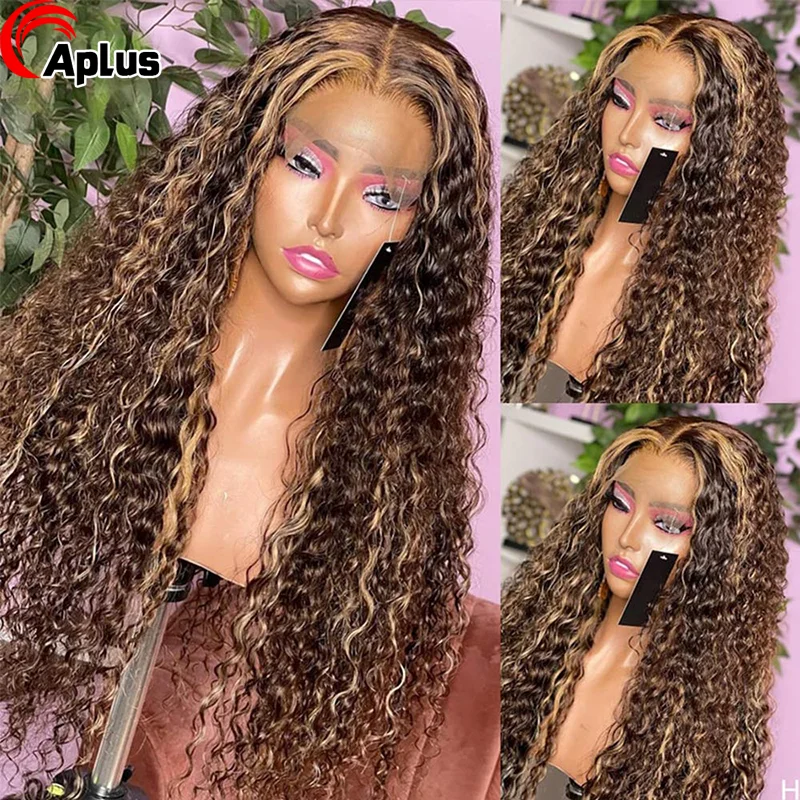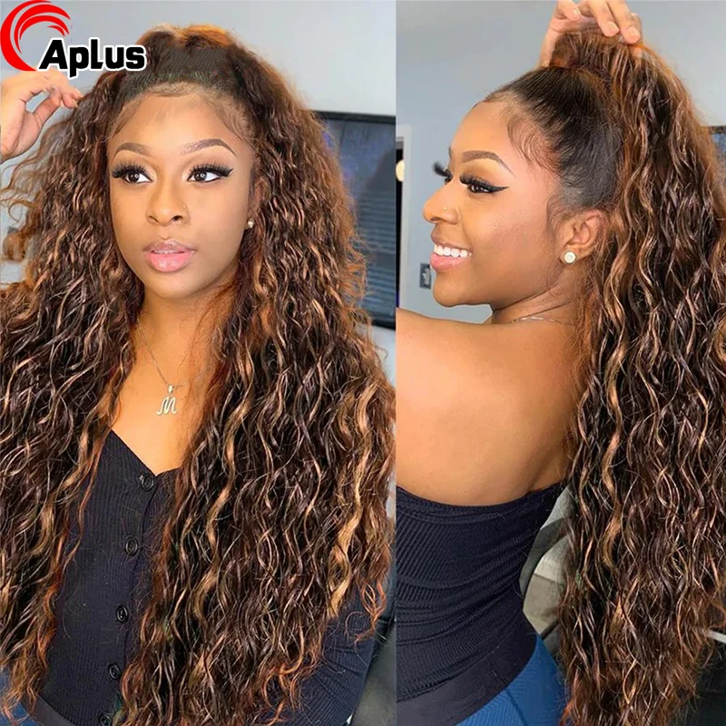 Парик из натуральных волос, 30 дюймов, 4x4, парик на водной волне, парик из бразильских вьющихся человеческих волос, подсветка, парик с водной волной