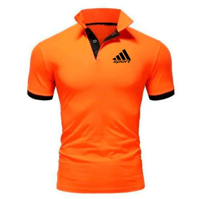 Летняя рубашка-поло, Мужская Однотонная футболка с коротким рукавом...