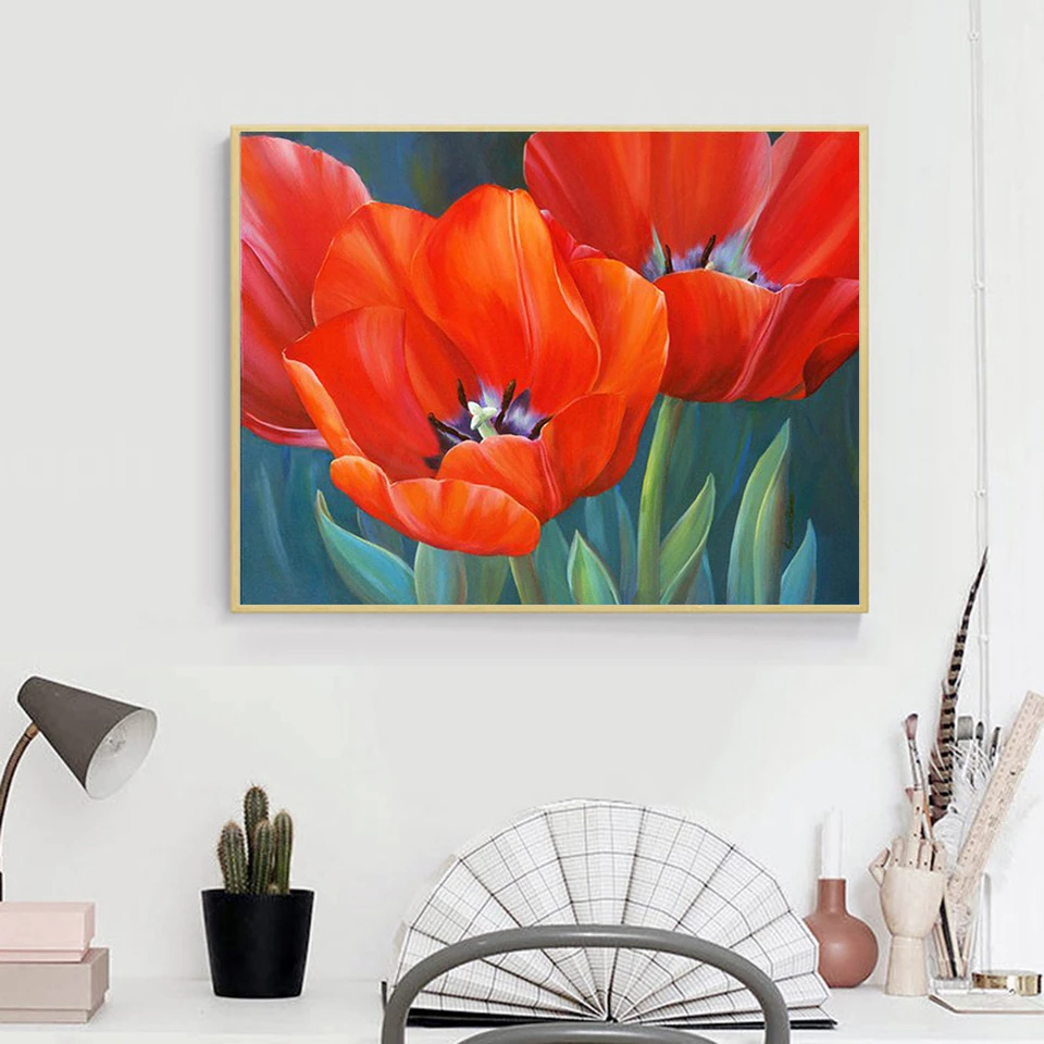 Яркие тюльпаны, цветы, море 5D, алмазная вышивка сделай сам, полноразмерная и круглая картина, Набор для вышивки крестиком, настенное искусство, домашний декор