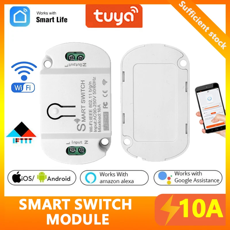 Умный выключатель Tuya 10A, 1 шт.лот, Wi-Fi, дистанционный выключат...