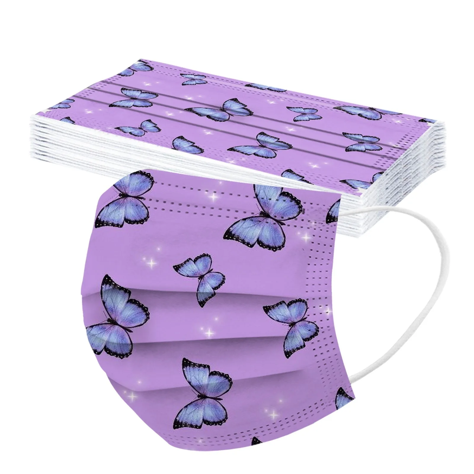Маска для лица, одноразовая, трехслойная, с принтом бабочек, 10 шт.
