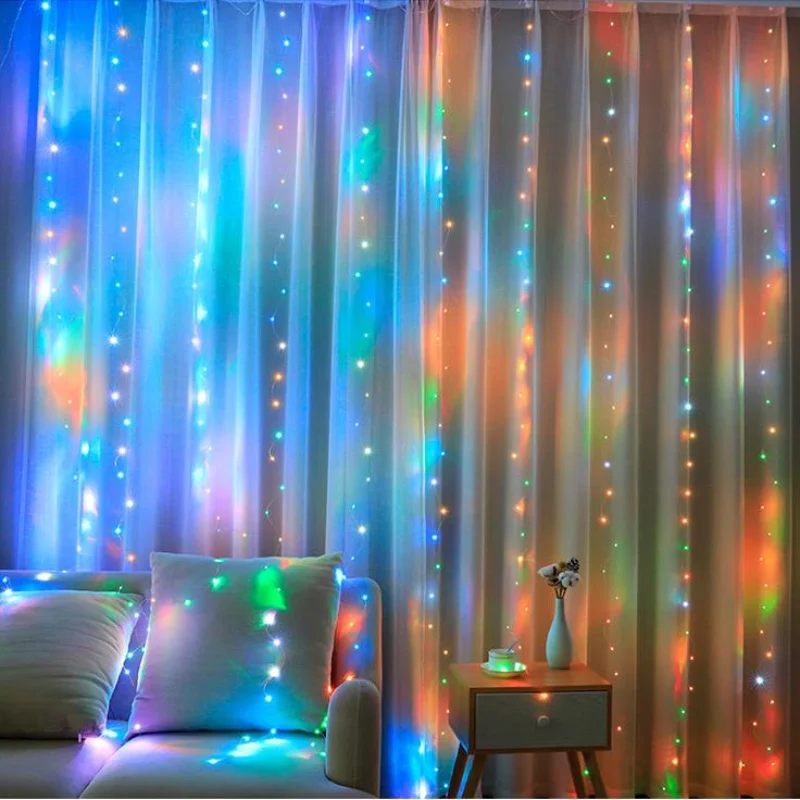 Гирлянда-занавес, 16 цветов, на новый год, 2022, для спальни