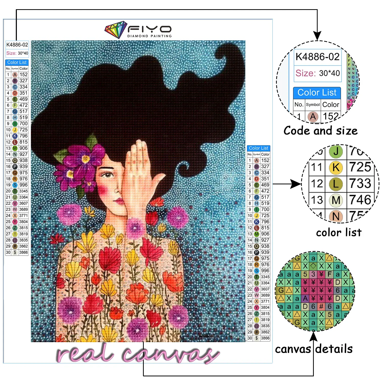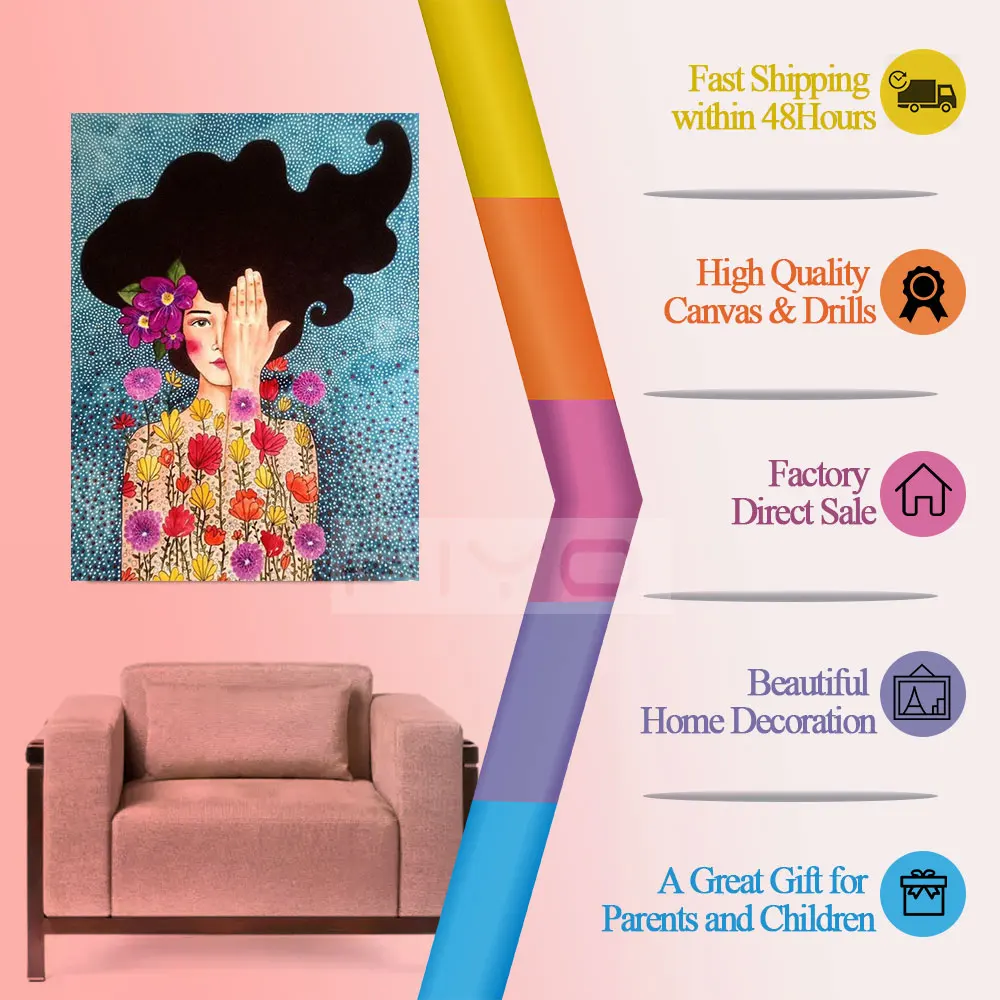 【 Drill Area 】: Full Square/round diamond mosaic Abstract Flowers Girl Hair