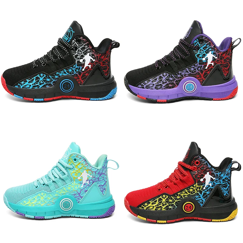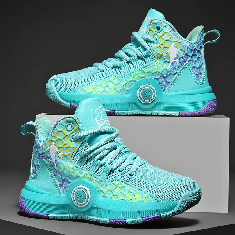 Парные летние трендовые профессиональные Нескользящие Дышащие Высокие амортизирующие баскетбольные туфли для мальчиков и девочек для уличных тренировок