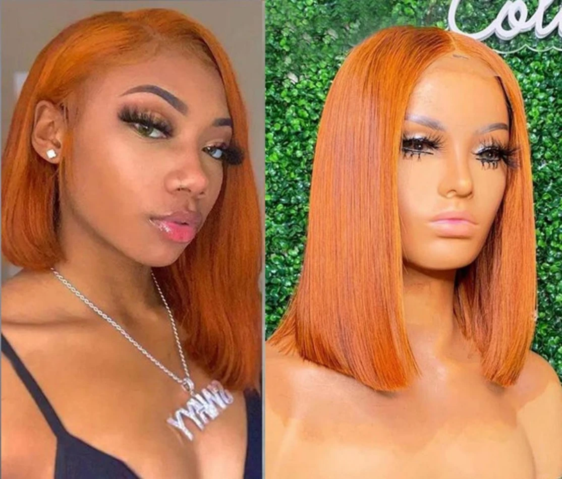 Парики из человеческих волос Halo Orange Ginger окрашенные с короткой стрижкой, 13x4