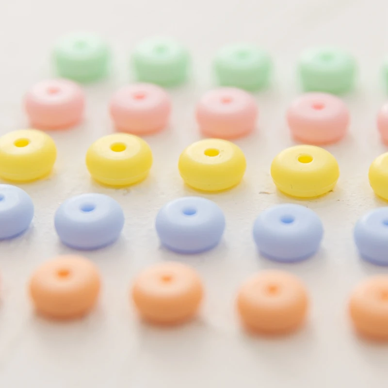 Это креативный и модный цветной бисер, пищевой силикон, здоровый и безопасный; Уникальный дизайн, стильный и красивый;Разные цвета и стили на ваш выбор!Это может улучшить способность ребенка практиковаться и дать им знать разные цвета.