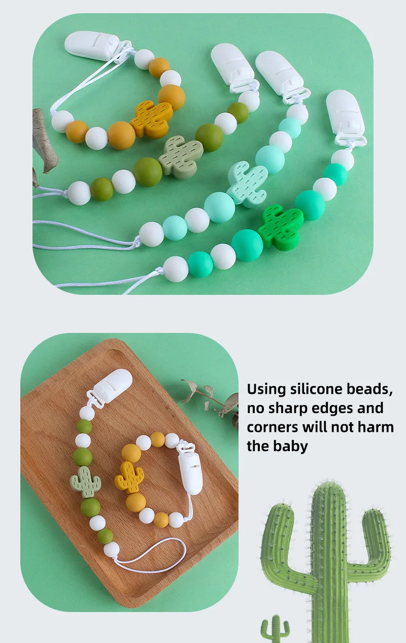 Соска-пустышка Coskiss детская, безопасная, пищевая, с милым КАКТУСОМ, нипель для клипа, держатель для ребенка, соска с именем