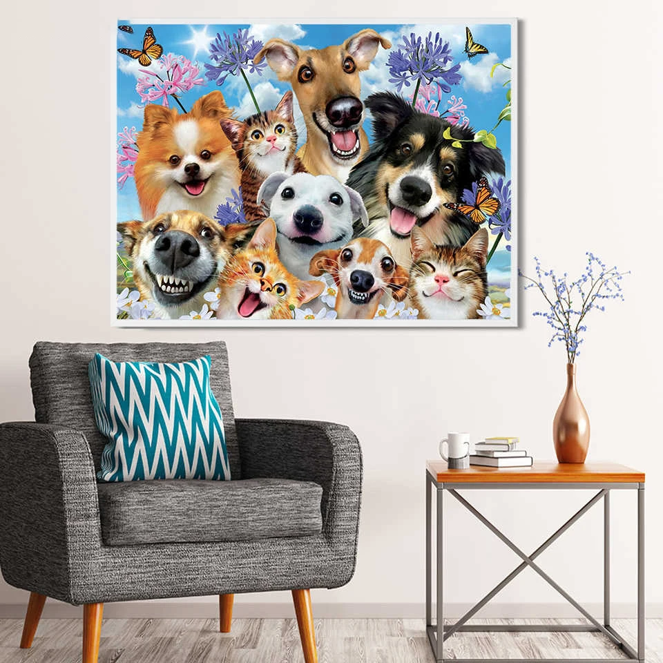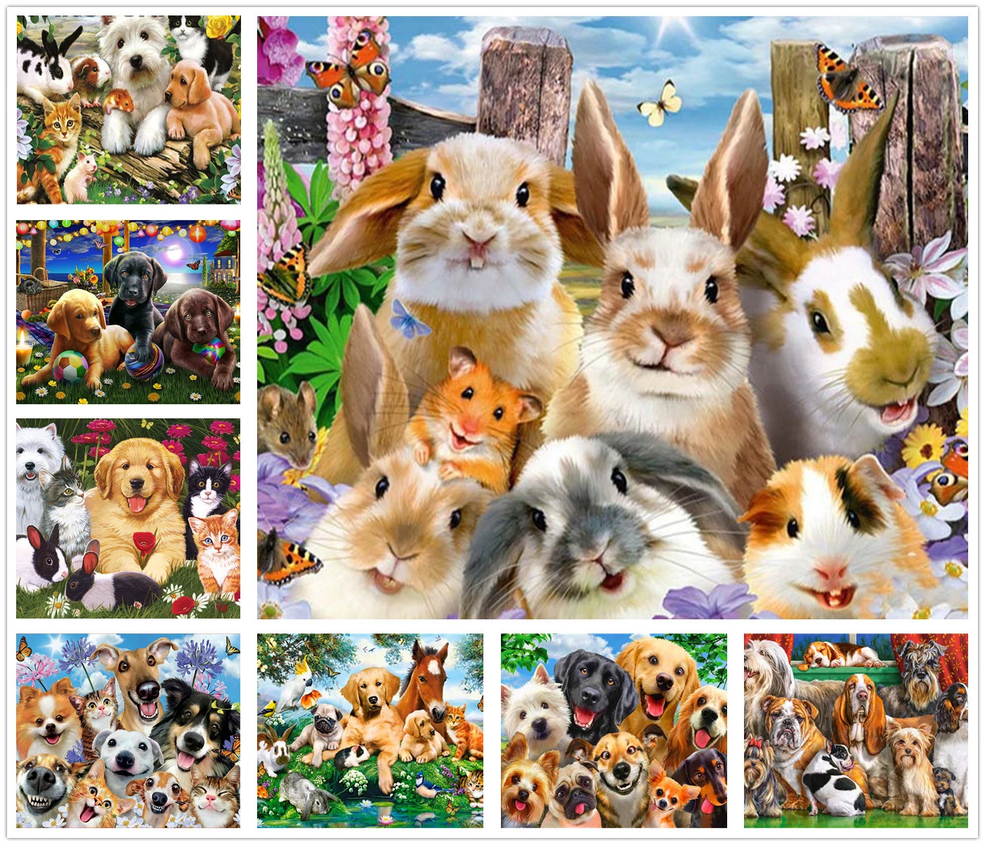 Набор для алмазной вышивки сделай сам, картина из квадратных и круглых страз с изображением животных, кролика, собаки, кошки, лошади, для домашнего декора