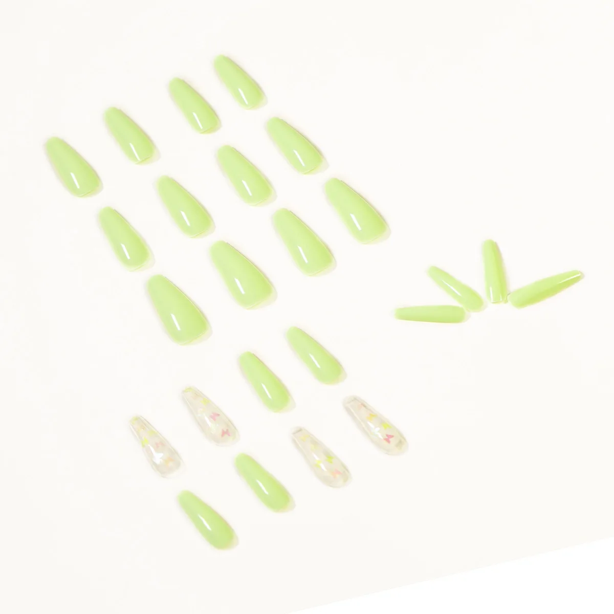 Накладные ногти, 24 шт., матовые зеленые патчи для ногтей, клеевой ...