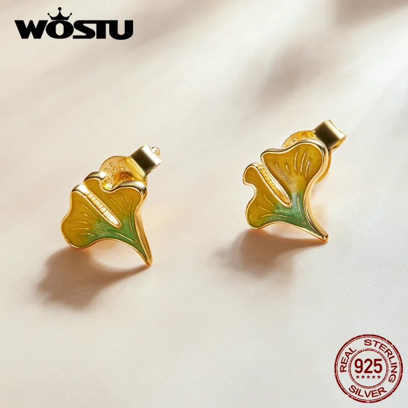WOSTU 925 Стерлинговое Серебро в форме листа серьги-гвоздики в виде...