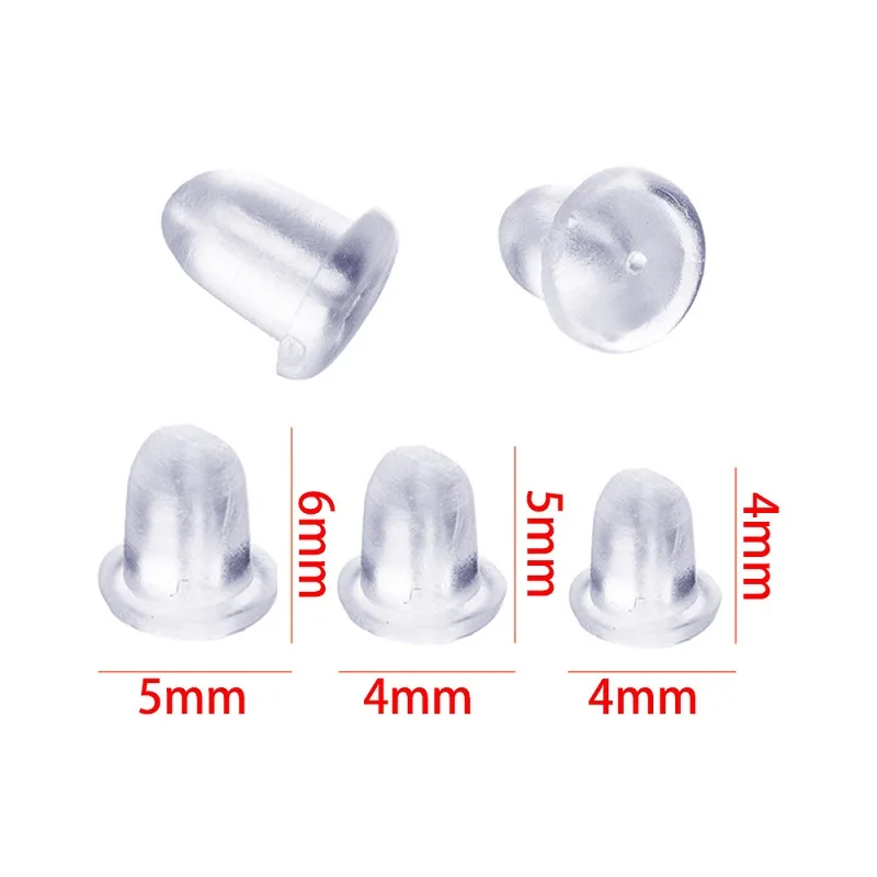 Key words: earring back,ear post ,Earring StopperSize: (4*4mm)(4*5mm)(5*6mm)