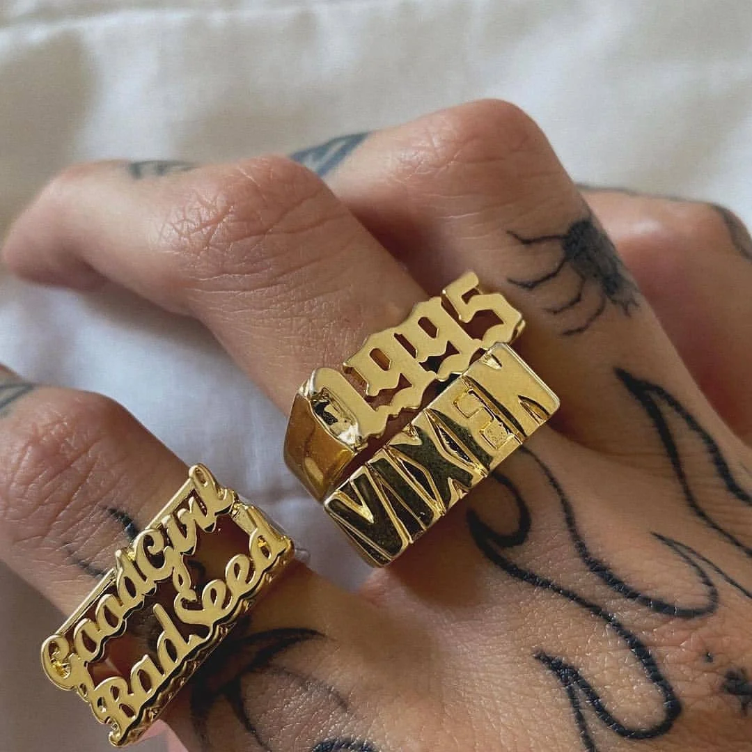 Кольцо с именем под заказ в стиле хип-хоп рок, увеличенное кольцо у...