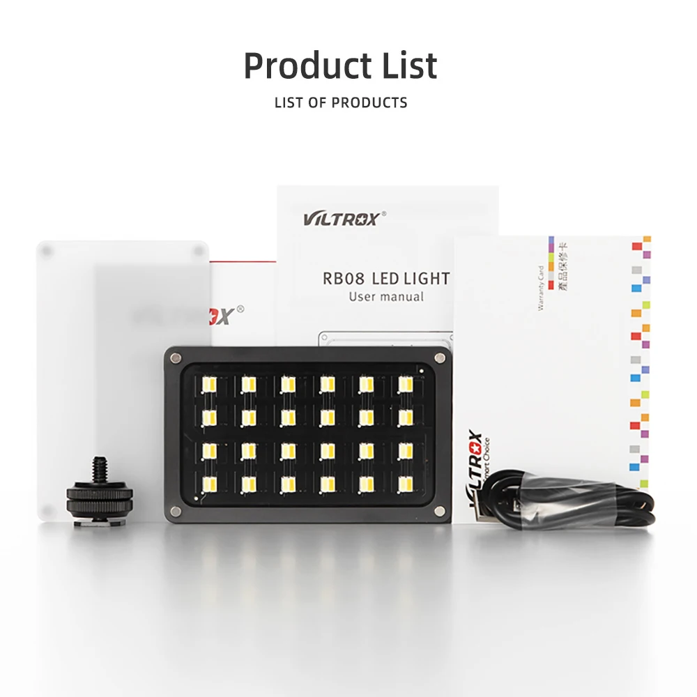 Viltrox RB08 двухцветный 2500K-8500K мини видео светодиодный свет портативный заполнясветильник со встроенной батареей для телефона камеры студийной съемки