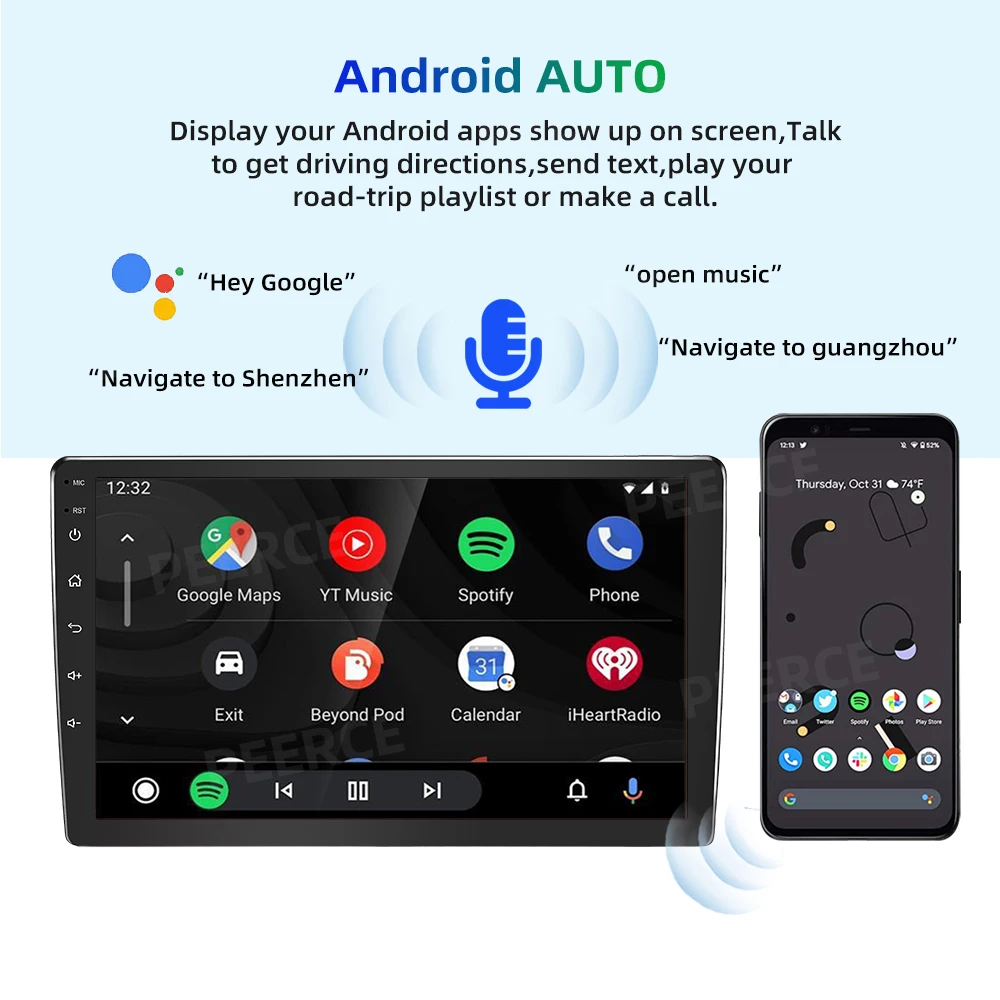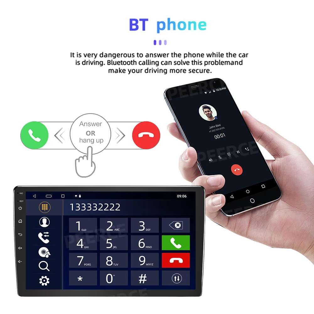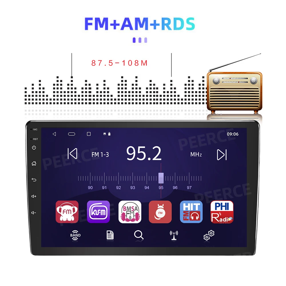 Автомагнитола PEERCE, 1 DIN IPS, сенсорный экран 910 дюйма, регулируемая, 1 DIN, Android 10, стереомагнитола, 8 ядер, GPS-навигация