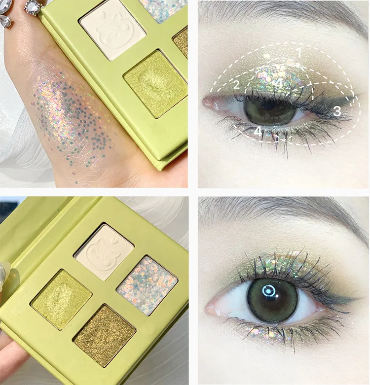 4 цвета Тени для век Матовая блестящая пудра легко окрашивается без летания водостойкие долговечные тени для век Косметика для макияжа TSLM1
