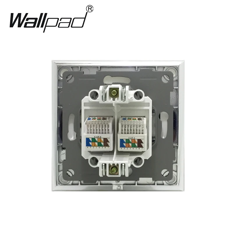 EU Silver Cat6 разъем для передачи данных Wallpad закаленное стекло стандарт ЕС двойной передачи данных тел RJ45 RJ11 Cat6 Интернет-выход