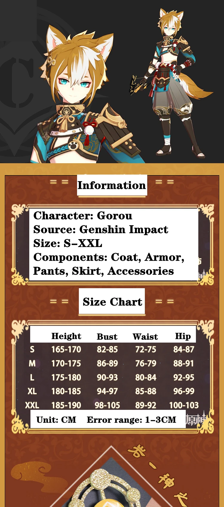Костюм ударопрочный Gorou для косплея геншина, мужской топ, брюки, юбка, комплект аксессуаров для взрослых в стиле аниме, одежда для Хэллоуина, рок